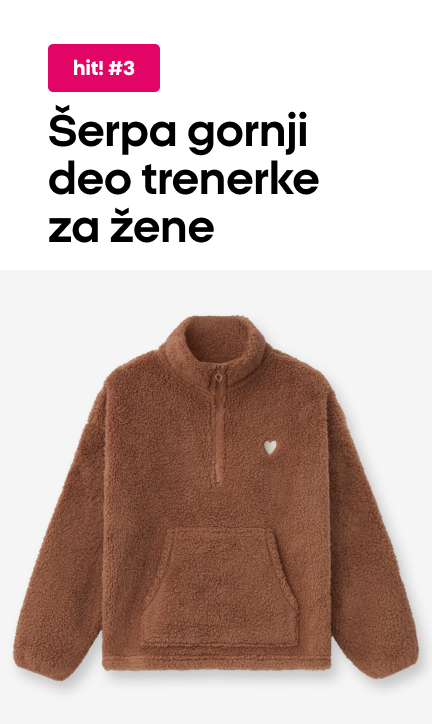 Otkrijte moderne, mekane gornje delove trenerki koji garantuju toplinu u hladnim danima! Od četvrtka, šerpa gornji delovi trenerki u raznim bojama i dezenima, kao i helanke, čekaće vas u vašem Pepcu, kao i uvek, po hit cenama.