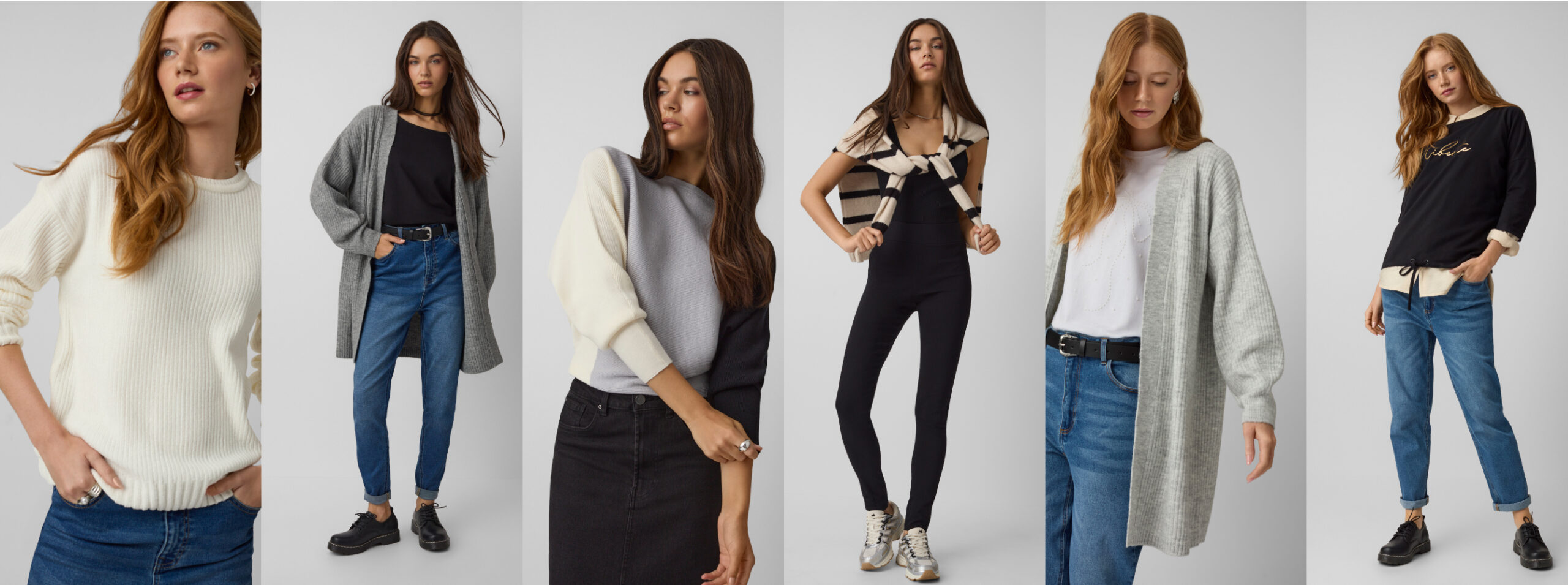 Odeća iz nove kolekcije za žene savršeno odražava duh vremena – udobna je i moderna u isto vreme,,savršena i za intenzivan dan na poslu, za spontane sastanke sa prijateljima ili za vikend izlete van grada. Dobro osmišljeni krojevi i pažljiv odabir tkanina znače da se isti komadi odeće mogu lako stilizovati i u poslovnoj i u kežualverziji dodavanjem ili uklanjanjem pojedinačnih dodataka.