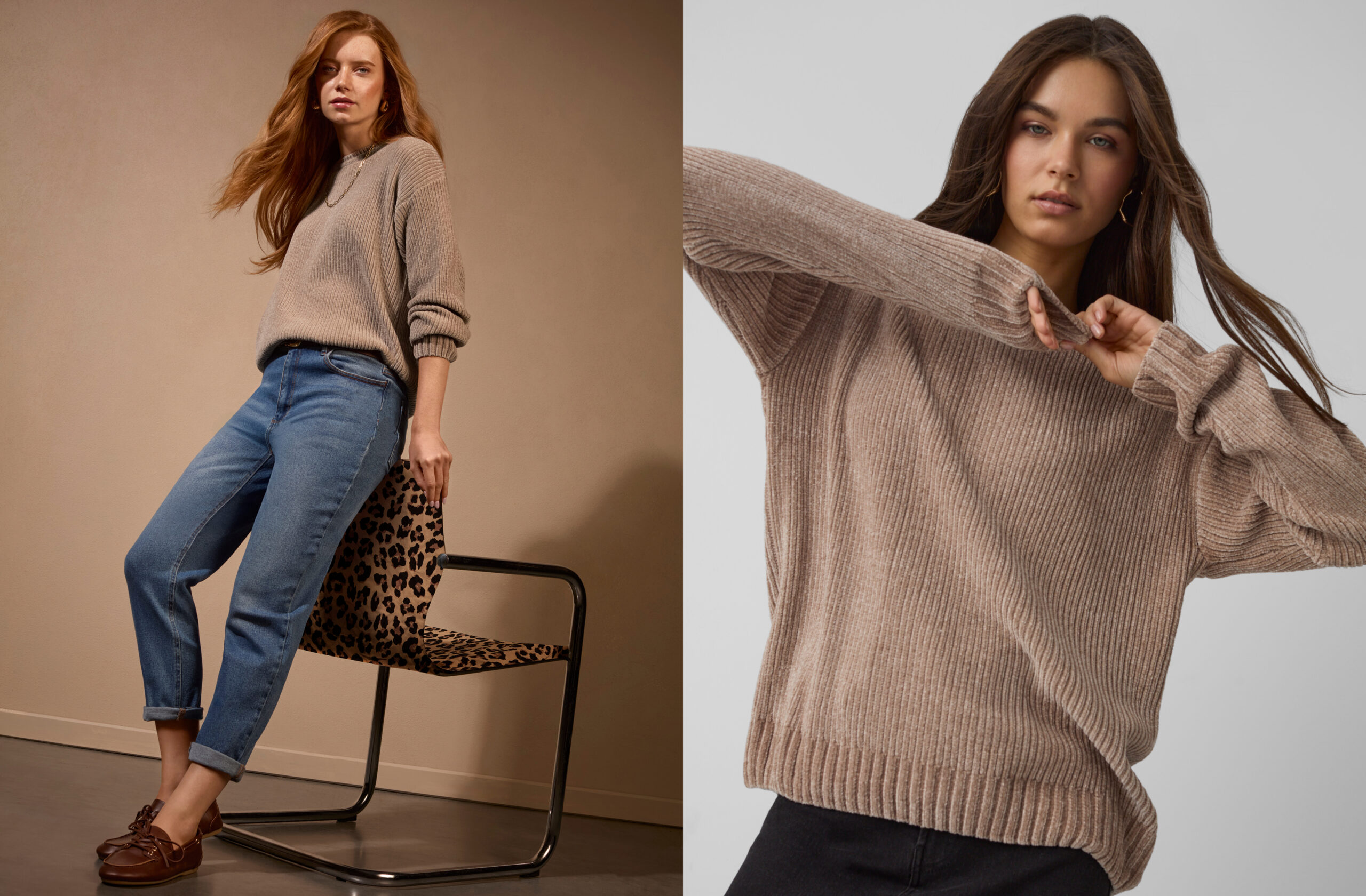 Monohromatske kombinacije boja su ponovo u modi! U Pepcu ćete pronaći komplete od modernog, punijeg žerseja u prigušenim bojama, koji omogućava lako kombinovanje gornjih i donjih delova – u braon, teget ili mešavini ovih boja. Izaberite udobne majice sa dugim rukavima, koje će odlično funkcionisati ispod sakoa ili kao glavni delovi autfita. U kombinaciji sa klasičnim pantalonama, šarenim šalom ili ukrasnim kaišem, osvojiće srca ljubitelja jednostavnosti.