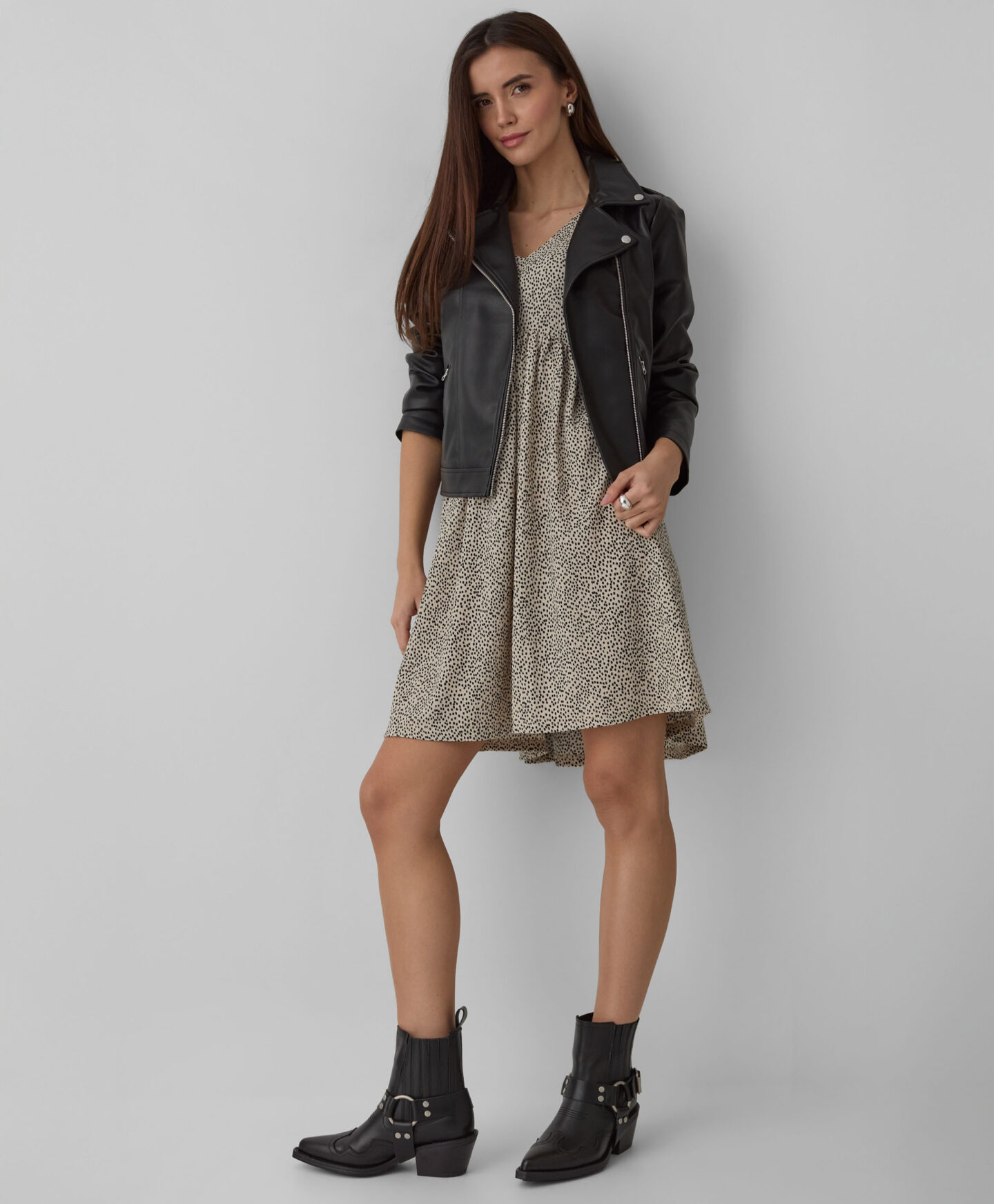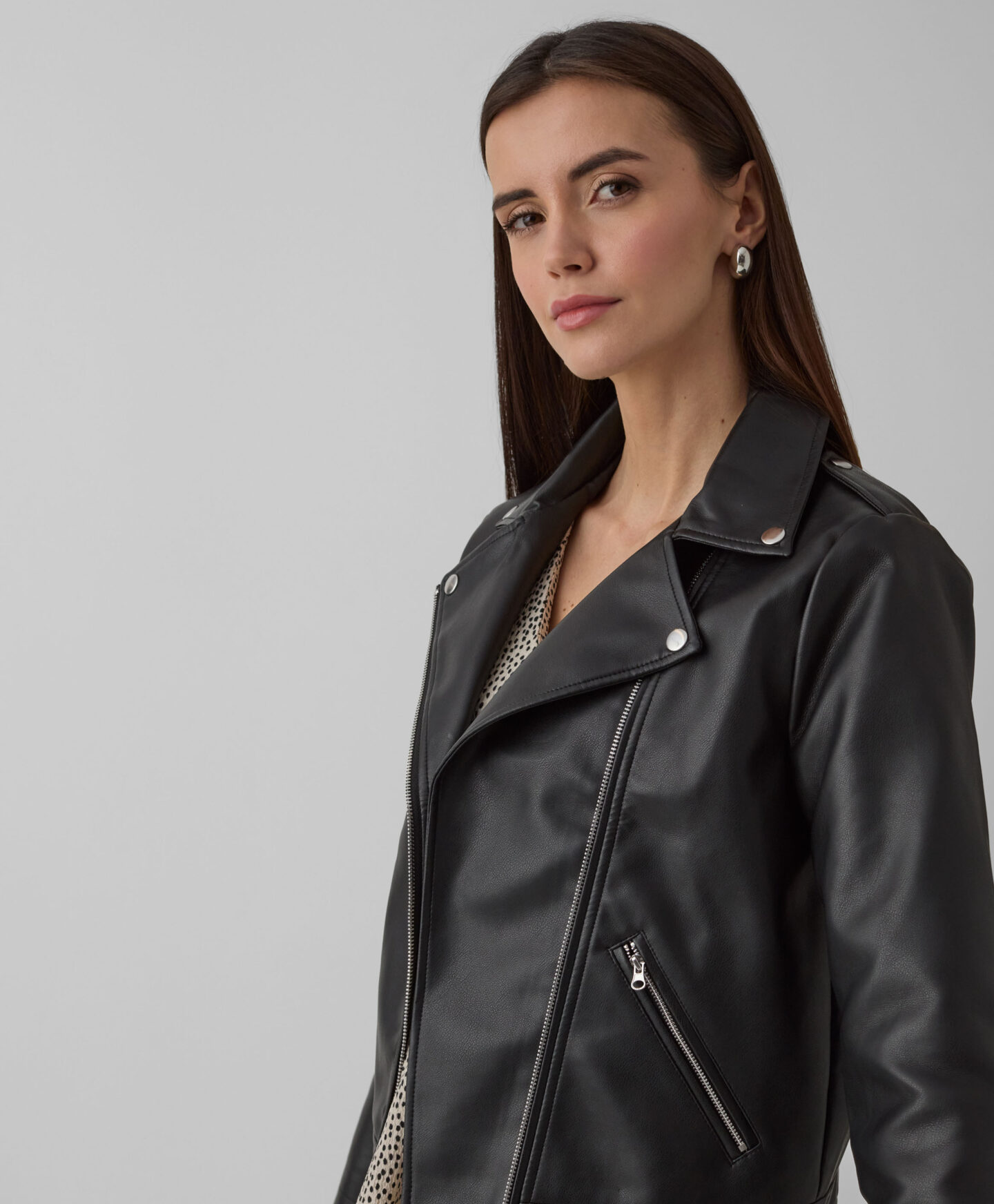 Bajkerska jakna za žene sa rajsferšlusom dodaće karakter svakom autfitu. Praktični rajsferšlus osigurava brzo i udobno zakopčavanje ili otkopčavanje jakne u zavisnosti od vremenskih uslova. Mekan, izdržljiv materijal štiti od hladnoće i vetra, a istovremeno obezbeđuje udobnost tokom dugog nošenja. Bajkerska jakna ističe siluetu dajući samopouzdanje svakoj ženi. Savršeno se slaže i sa ležernim i elegantnim pantalonama.