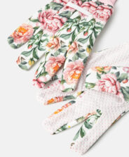 Baštenske rukavice sa cvetnim motivom za žene su nezaobilazan dodatak za svaku ženu koja radi u bašti, a pritom brine o zaštiti osetljive kože ruku. Pružaju odlično prianjanje, udobnost i slobodu pokreta tokom rada. Izrađene su od izdržljivih materijala koji štite od trnja i prljavštine, dok teksturirana površina omogućava siguran hvat baštenskog alata. Rukavice se lako održavaju. U ponudi je dostupno više dezena.