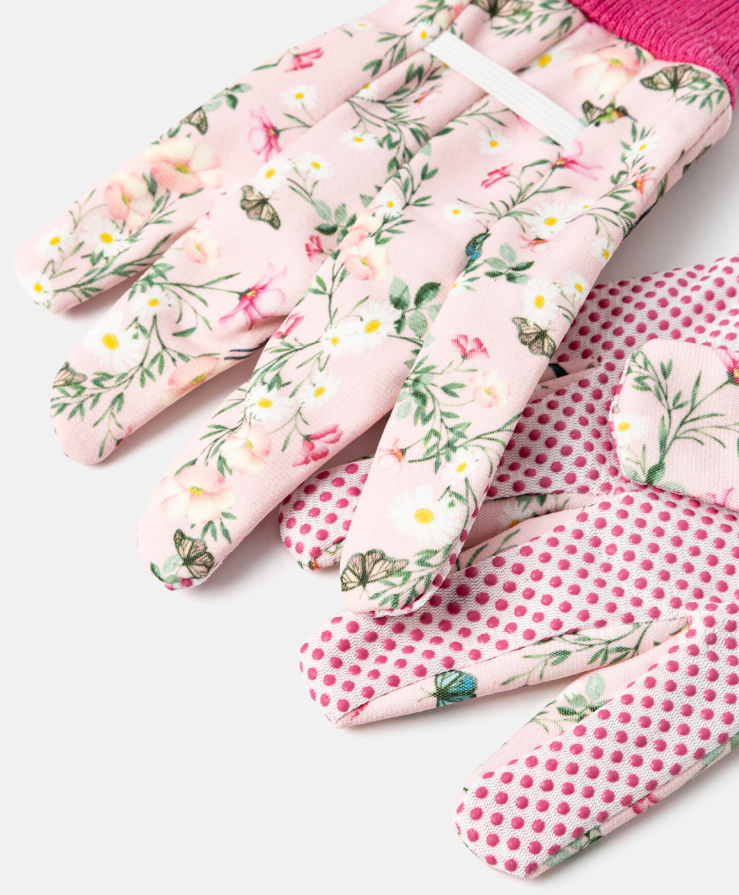 Baštenske rukavice sa cvetnim motivom za žene su nezaobilazan dodatak za svaku ženu koja radi u bašti, a pritom brine o zaštiti osetljive kože ruku. Pružaju odlično prianjanje, udobnost i slobodu pokreta tokom rada. Izrađene su od izdržljivih materijala koji štite od trnja i prljavštine, dok teksturirana površina omogućava siguran hvat baštenskog alata. Rukavice se lako održavaju. U ponudi je dostupno više dezena.