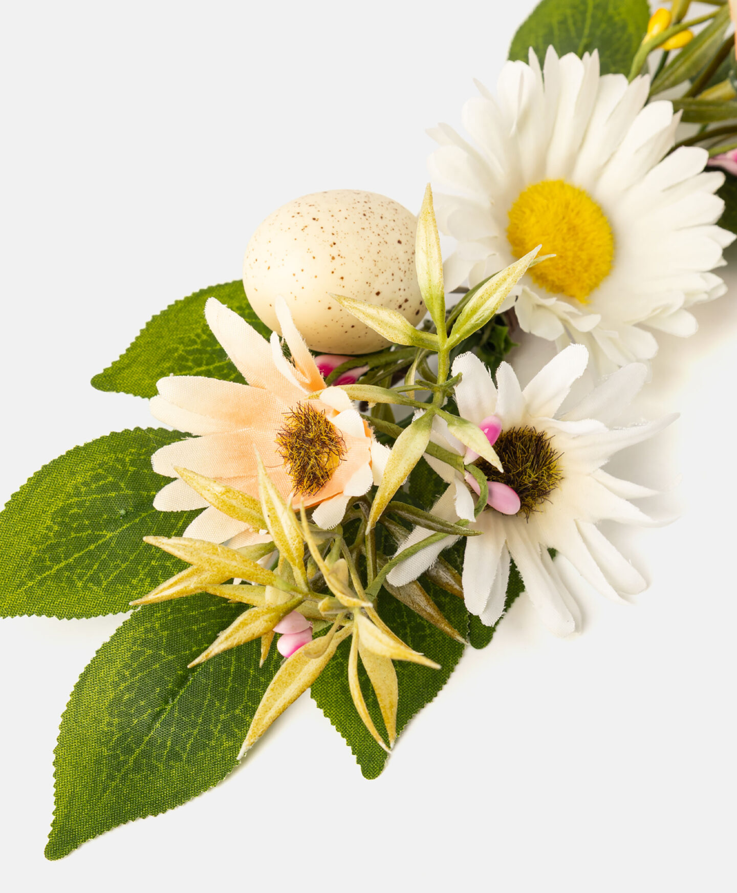 Bela dekoracija za korpu je već spreman aranžman koji možete postaviti na dršku uskršnje korpe. Aranžman je lagan, izdržljiv i otporan na vremenske uslove. Predstavlja savršenu alternativu svežem cveću, koje možda nije dostupno u ovo doba godine. Dostupno u tri različita dezena.