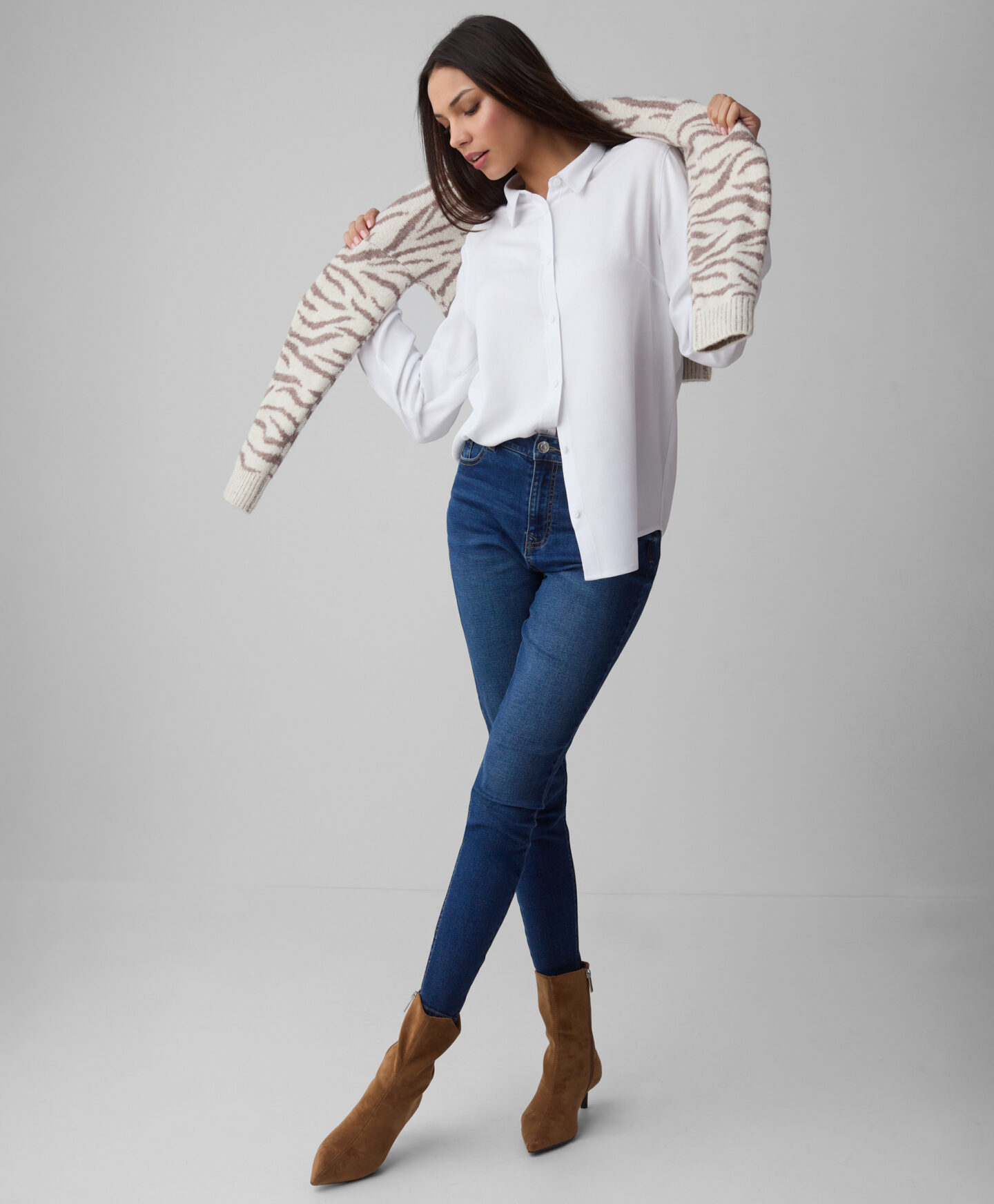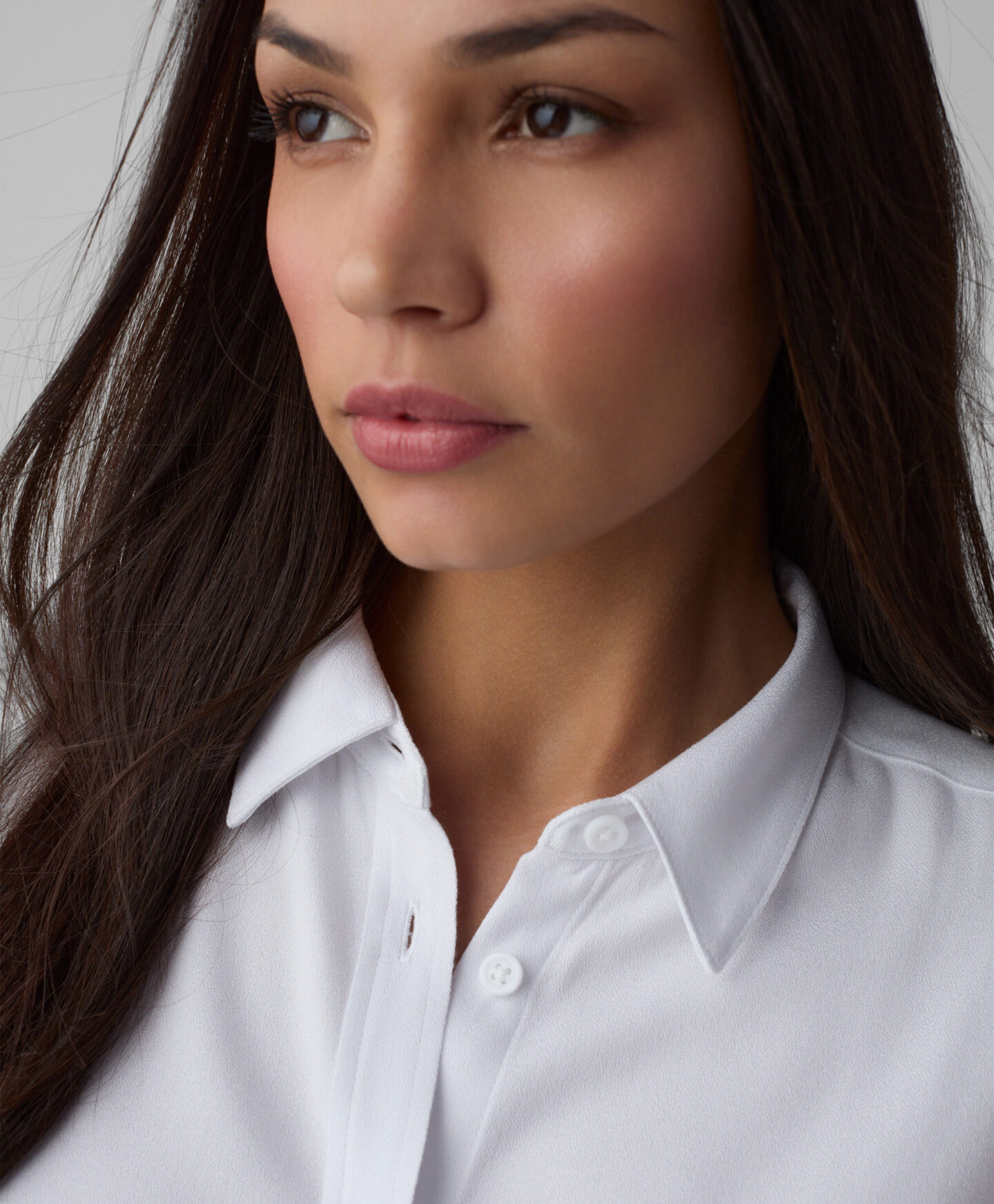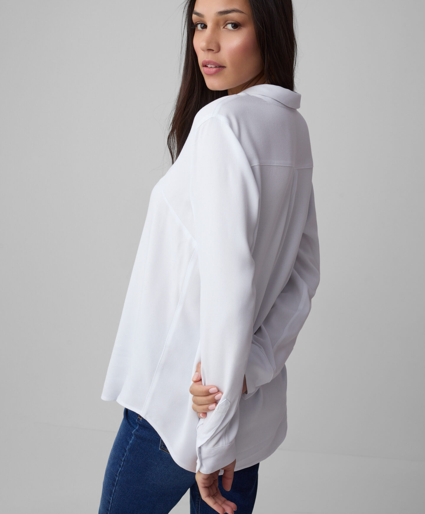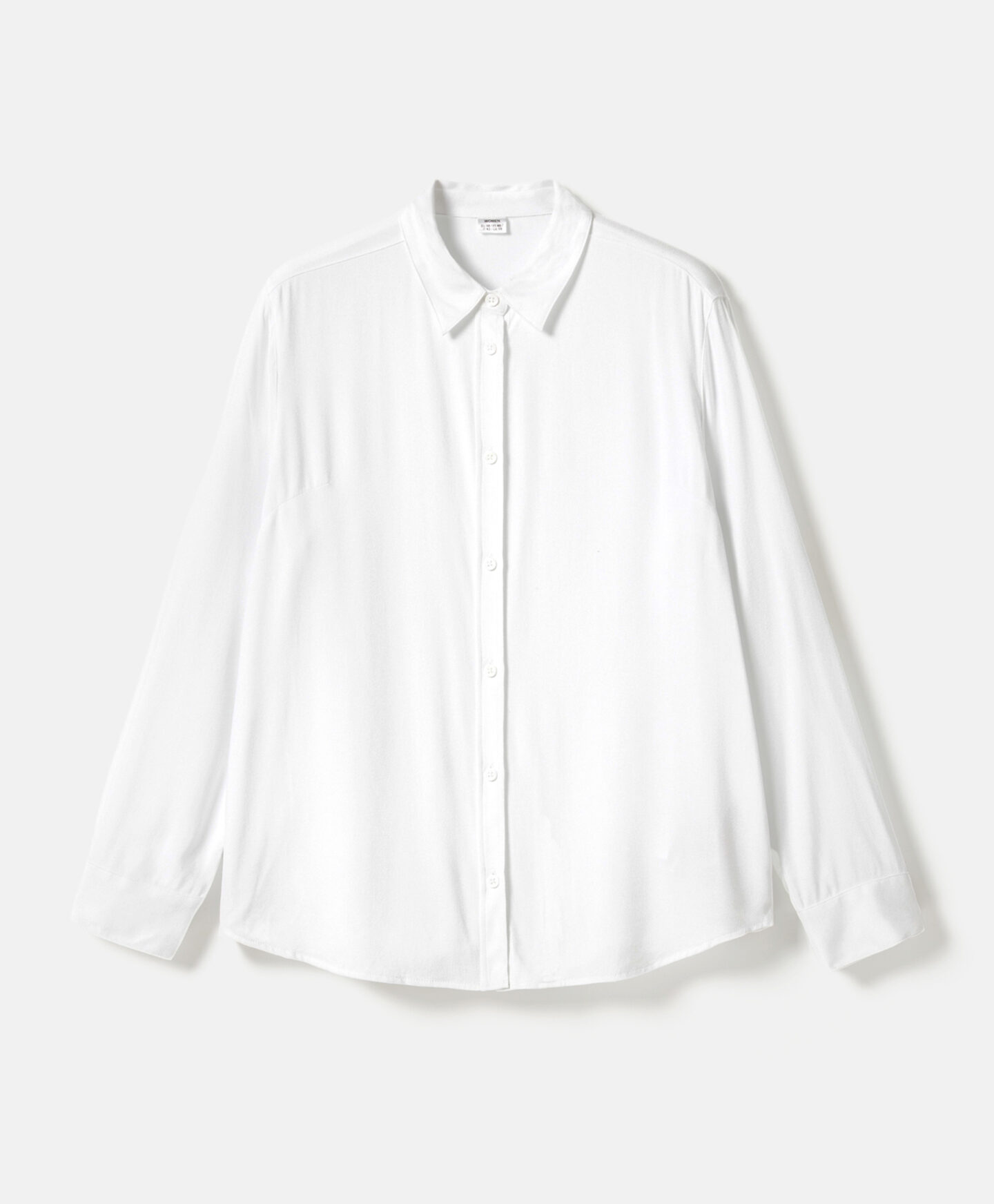 Bela košulja za žene od 100% viskoze kombinuje udobnost sa bezvremenim stilom. Mekana je, prozračna i izuzetno prijatna na dodir. Klasičan kroj košulje, u kombinaciji sa elegantnom belom bojom, čini je neverovatno lakom za kombinovanje. Minimalistički dizajn dobro se uklapa i u ležerne i u formalnije odevne kombinacije.