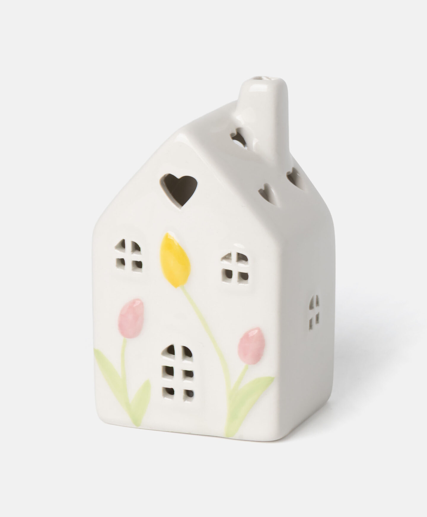 Bela LED kuća sa cvetnim dezenom je dekoracija koja stvara posebnu atmosferu i zrači nežnim, suptilnim svetlom. Pastelne boje i prolećni dezen unose svežinu i vedrinu u svaki enterijer. Kućica odlično izgleda na kuhinjskom pultu, polici u dnevnoj sobi ili pored dečijeg kreveta. Dostupna je u više dezena.
