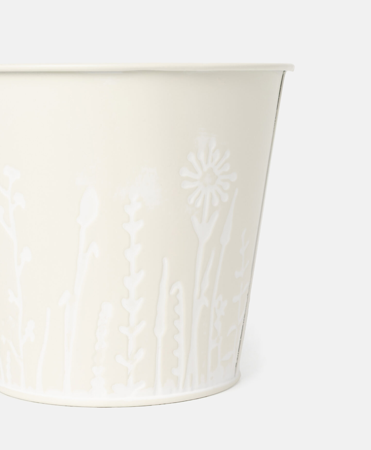 Bela metalna saksija sa dezenom je lagana, izdržljiva i otporna na vremenske uslove. Prolećni motiv koji krasi njene stranice uneće dašak svežine na vašu terasu ili balkon. Odlična je za sadnju manjih biljaka, povrća ili cveća. Saksija se lako čisti i održava, dovoljno je prebrisati je vlažnom krpom kako bi zadržala sjaj i lep izgled. U ponudi je dostupno više dezena.