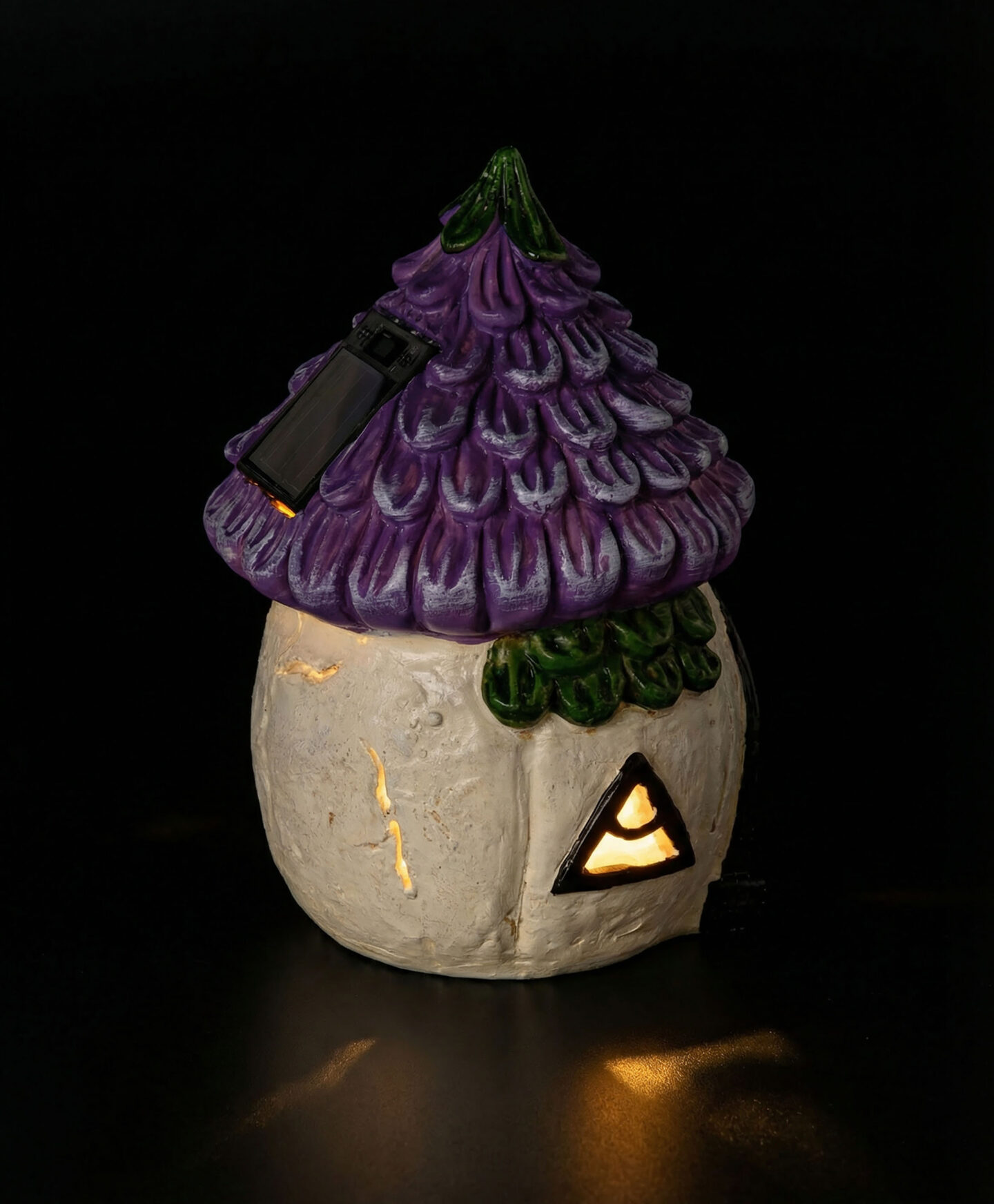 Bela solarna lampa u obliku kuće je šarmantna dekoracija koja pomaže u stvaranju magične atmosfere na vašoj terasi ili balkonu svake večeri. Pokreće se solarnom energijom, zahvaljujući ugrađenom solarnom panelu, eliminiše potrebu za kablovima ili baterijama, pri čemu štedi električnu energiju. Lampa se automatski uključuje u sumrak i isključuje u zoru, obezbeđujući osvetljenje tokom cele noći bez dodatnih radnji. Izrađena je od izdržljivih materijala otpornih na vremenske uslove.