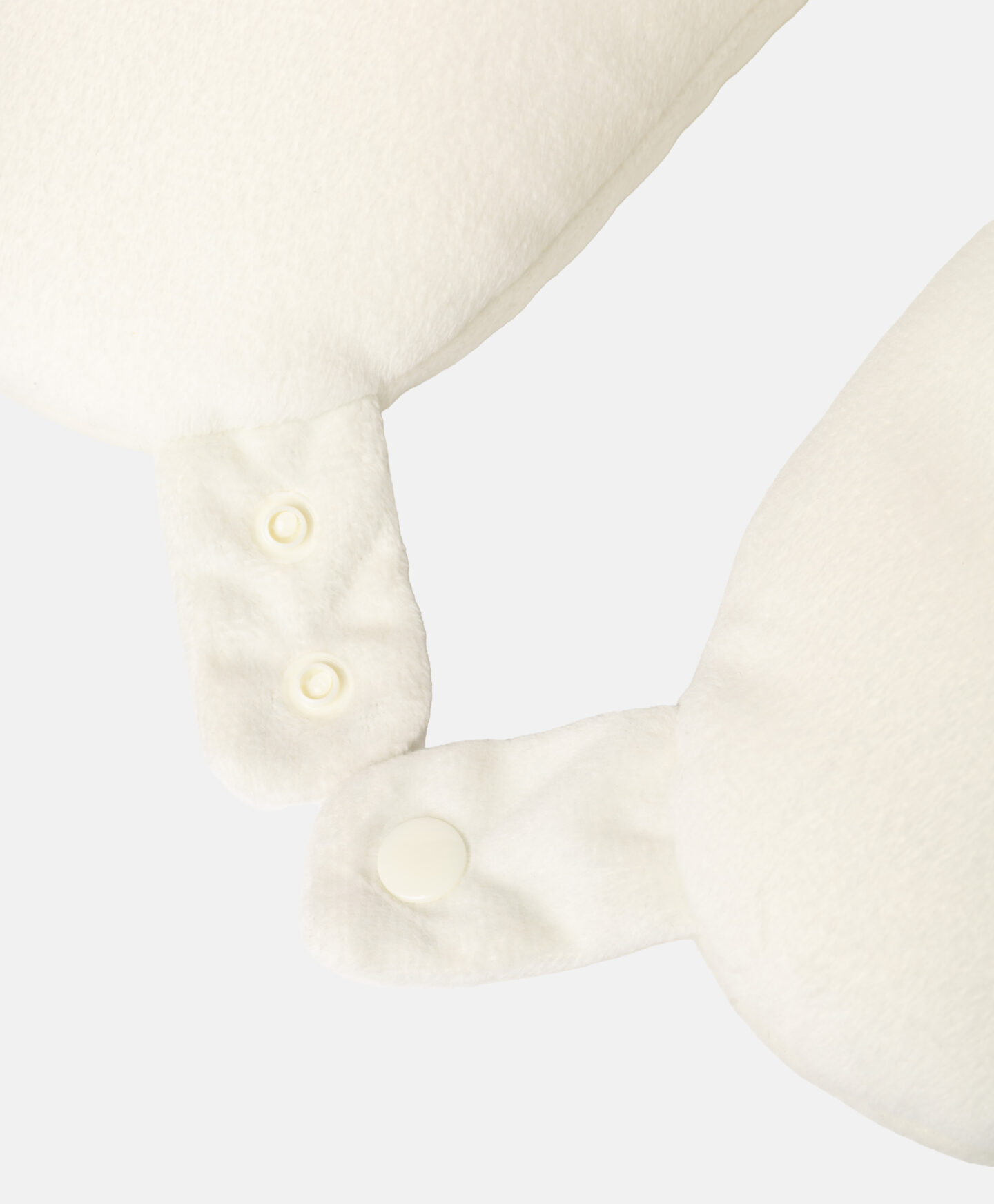 Ovaj beli putni jastuk neizostavan je na dugim putovanjima! Njegov ergonomski oblik pruža oslonac vratu i sprečava pomeranje glave u stranu. Navlaka je izrađena od materijala prijatnog za kožu.