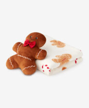 Belo ćebe sa jastukom kombinuje funkcionalnost sa delikatnom estetikom. Prigušena boja mu daje univerzalnost, a mekana struktura materijala podstiče opuštanje. Presavijeno u obliku jastuka, postaje praktičan svakodnevni predmet. Spreman da ga nekome poklonite.
