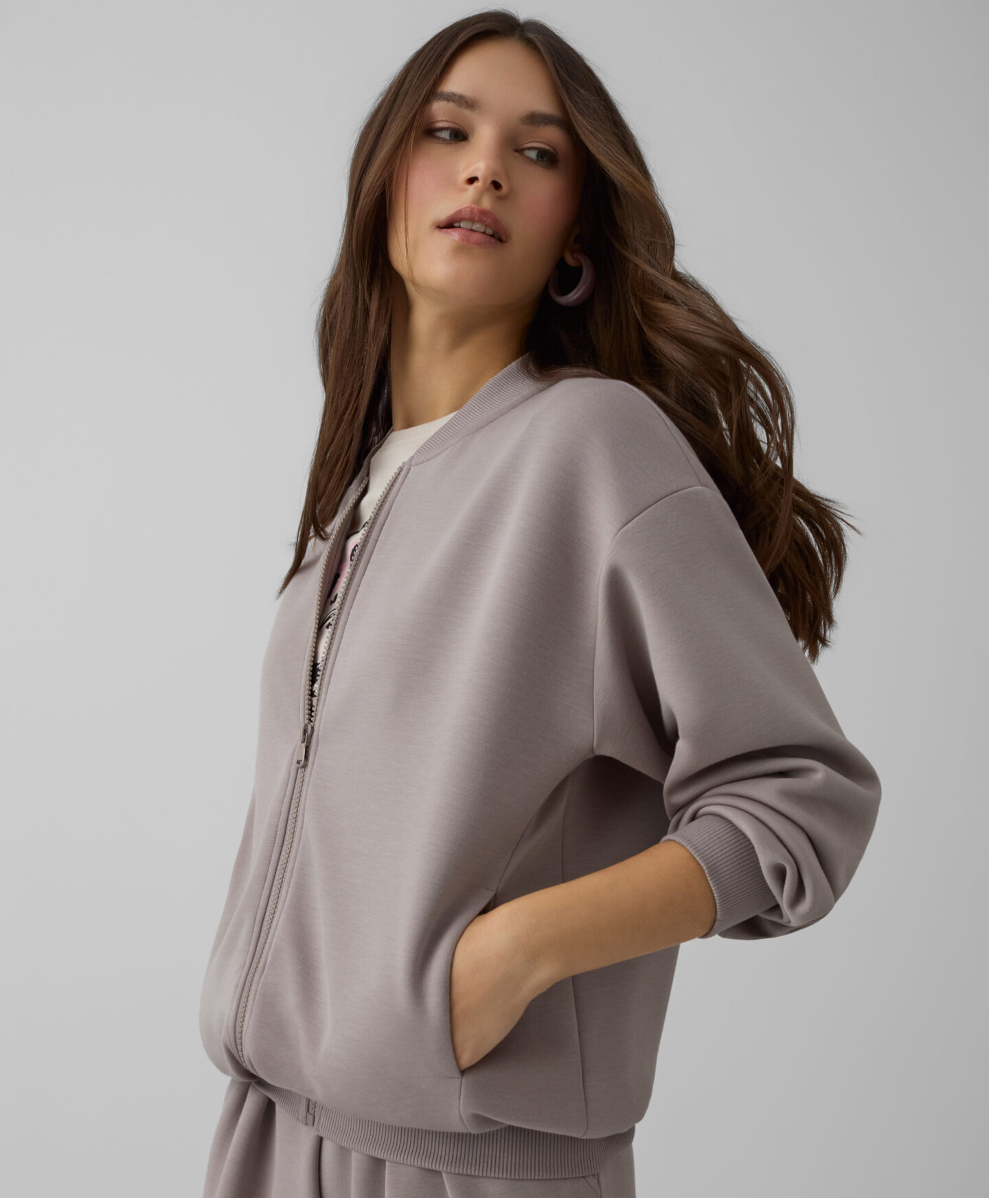 Bež dukserica za žene na rajsferšlus savršeno se uklapa uz pantalone iz iste kolekcije u istoj boji. To je moderan komad garderobe koji se odlično uklapa u svaku situaciju. Napravljen od mekanog i prijatnog materijala, pruža udobnost tokom celog dana. Kopčanje na rajsferšlus omogućava lako i brzo oblačenje, a univerzalna nijansa savršeno će upotpuniti vaš garderober.