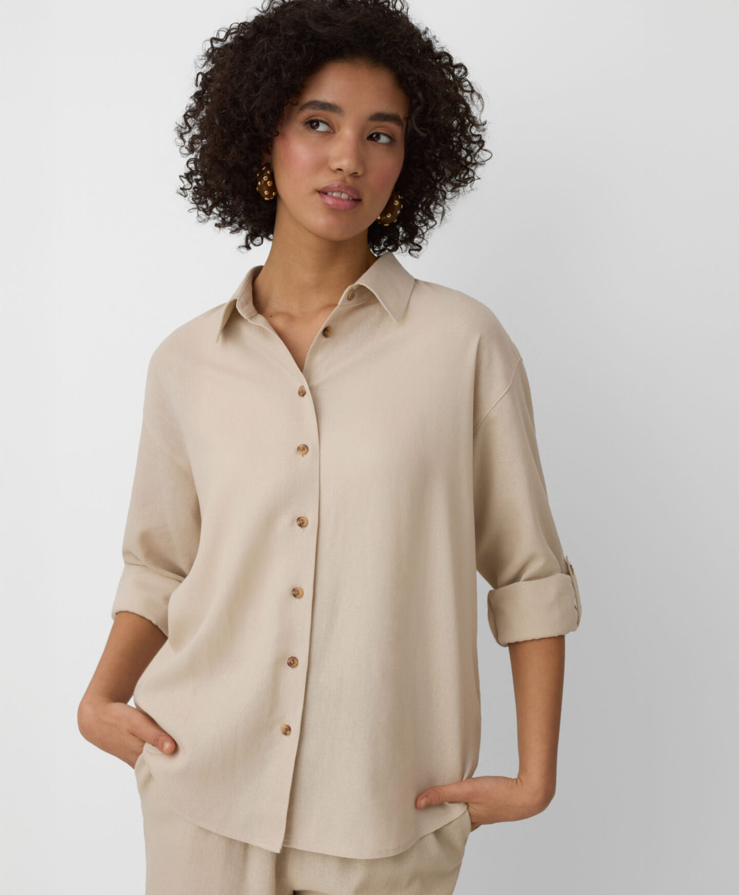 Ova bež košulja za žene savršena je za tople dane kada želite elegantniji izgled. Prozračna je i omogućava koži da diše, pružajući udobnost tokom celog dana. Dostupna je u dve boje.