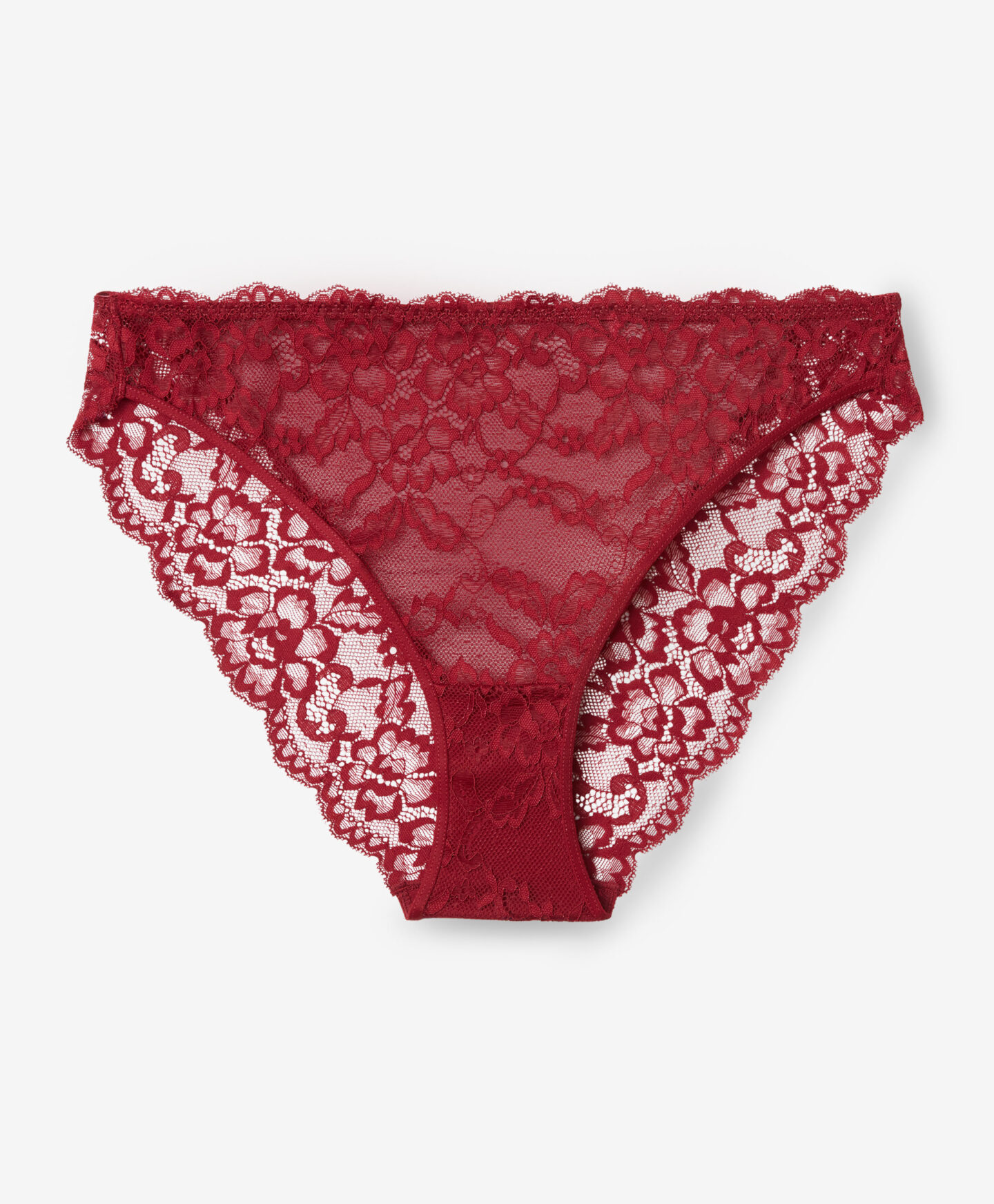 Bordo roze bikini gaćice od čipke za žene su senzualan izbor koji će vam pružiti osećaj neverovatne ženstvenosti. Dodatak elastina osigurava da gaćice savršeno pristaju, ističući vaše obline. Prozirna čipka je odličan izbor kada želite da povećate samopouzdanje. U kolekciji je dostupan i odgovarajući grudnjak.