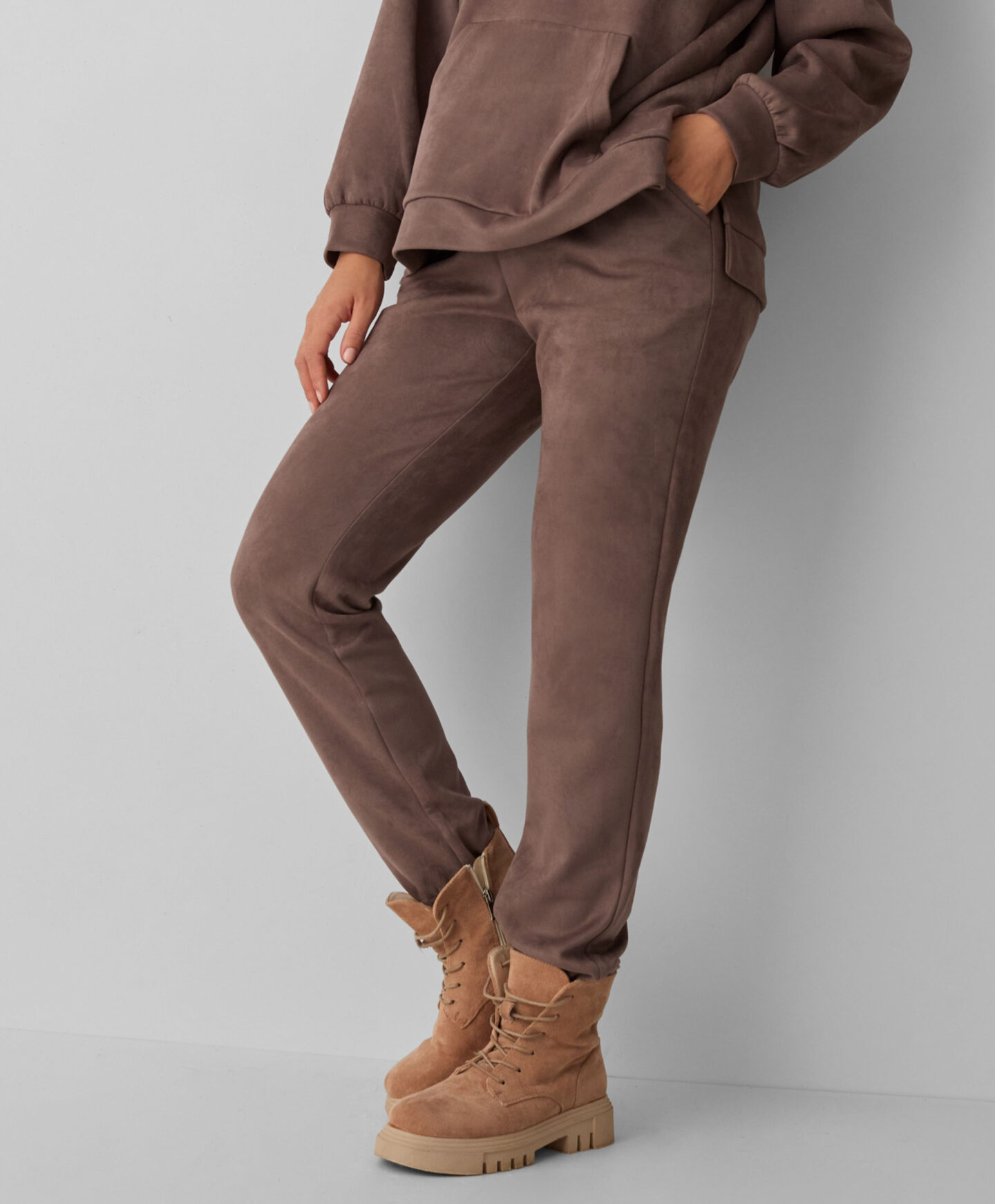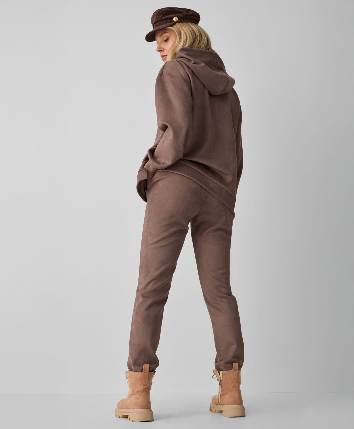 Braon antilop pantalone za žene sa džepovima su moderan i udoban izbor za svaki dan. Pantalone su mekane, prijatne na dodir i savršene za jesenje šetnje. Prigušena nijansa braon boje odlično se kombinuje sa duksom s kapuljačom iz iste kolekcije. Dostupno je više dezena.