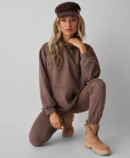 Braon antilop pantalone za žene sa džepovima su moderan i udoban izbor za svaki dan. Pantalone su mekane, prijatne na dodir i savršene za jesenje šetnje. Prigušena nijansa braon boje odlično se kombinuje sa duksom s kapuljačom iz iste kolekcije. Dostupno je više dezena.