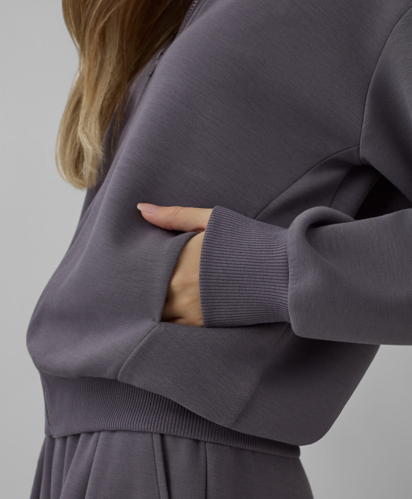 Braon dukserica za žene na rajsferšlus savršeno se uklapa uz pantalone iz iste kolekcije u istoj boji. To je moderan komad garderobe koji se odlično uklapa u svaku situaciju. Napravljen od mekanog i prijatnog materijala, pruža udobnost tokom celog dana. Kopčanje na rajsferšlus omogućava lako i brzo oblačenje, a univerzalna nijansa savršeno će upotpuniti vaš garderober.
