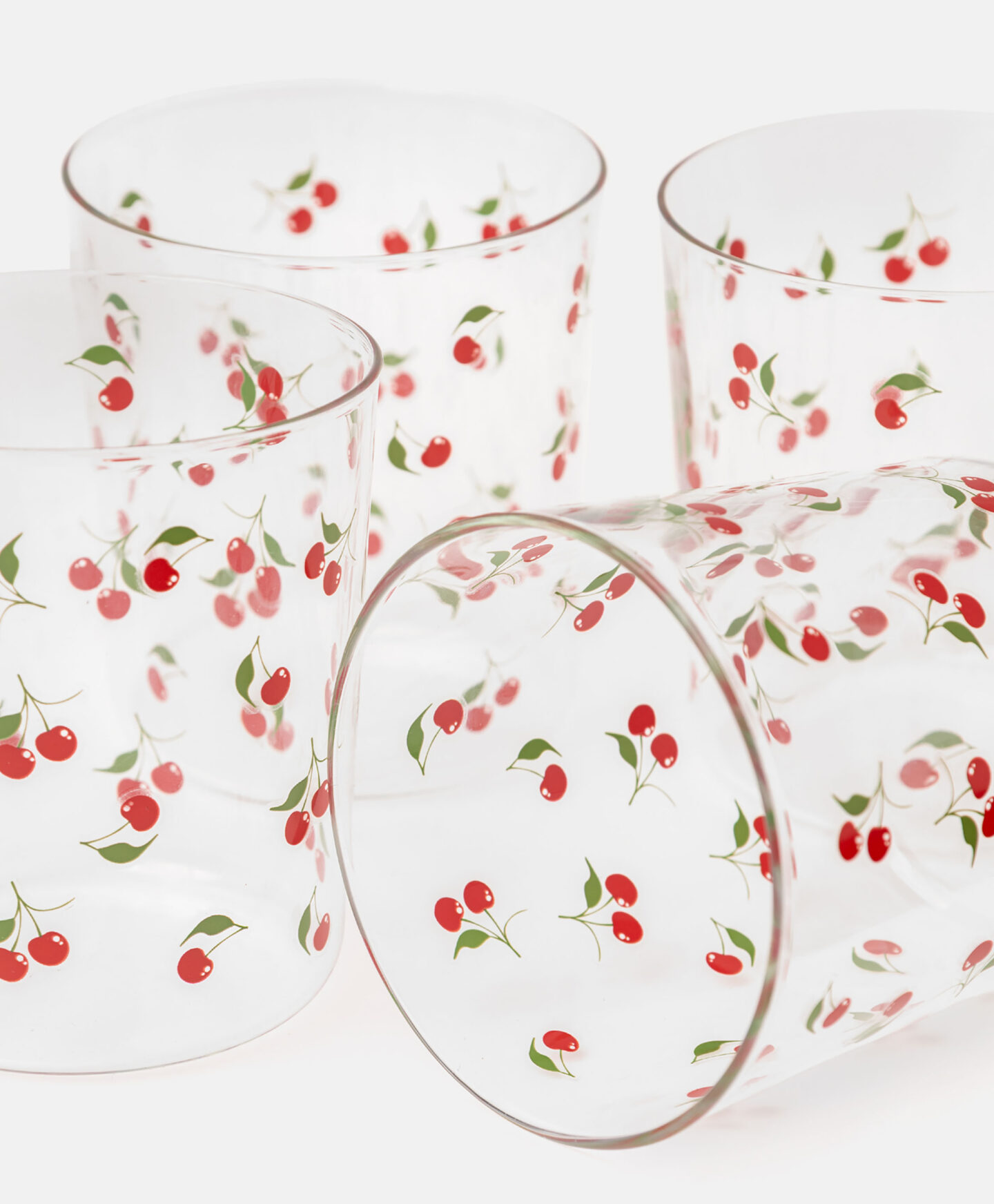 Ovaj set od 4 čaše, sa motivom trešanja uneće leto u vašu kuhinju! Borosilikatno staklo je izdržljivo, otporno na visoke i niske temperature i jednostavno za održavanje. Ove čaše su savršene za posluživanje omiljenih napitaka. Voćni dezen uneće vedrinu u vaše zajedničke trenutke!
