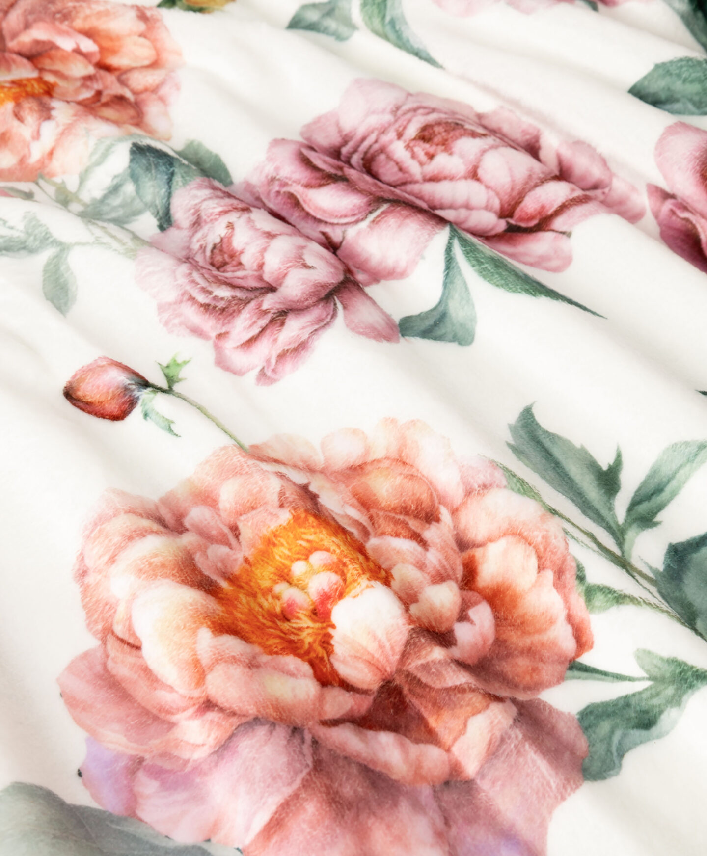 Ćebe sa cvetnim motivom savršeno upotpunjuje najnoviju kolekciju tekstila. Toplo je, mekano i stvoreno za ušuškavanje! Nežna tkanina prijatna je za kožu i grejaće vas tokom dugih večeri uz omiljenu knjigu ili film u udobnosti vašeg doma. Odlično je i za kratki odmor ili dremku. Ćebe je otporno na pranje i svakodnevnu upotrebu.