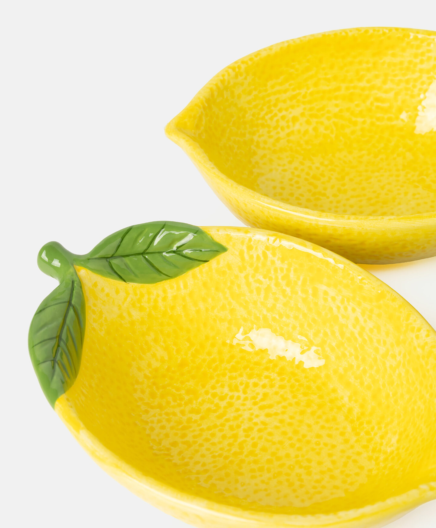 Ovaj set od 2 činije u obliku limuna oduševiće i ukućane i goste. Intenzivne boje uneće svežinu i lagan, letnji ugođaj u svaku postavku stola. Svaka činija ima prečnik od 16 cm, što ih čini idealnim za serviranje umaka, soseva, maslina i drugih ukusnih zalogaja.
