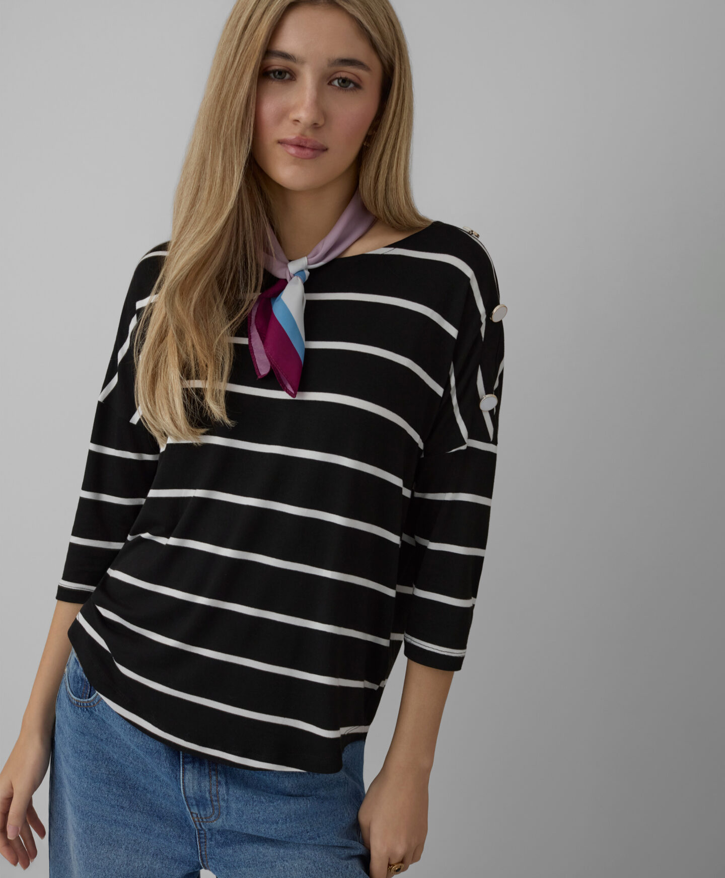 Crna prugasta majica za žene sa visokim sadržajem viskoze kreirana je za žene koje cene stil i udobnost. Njen ležeran kroj i upadljiva boja uklopiće se u svaku garderobu. Majica je idealan izbor za svakodnevno nošenje, posao ili posebne prilike. Dostupna je u dve boje.