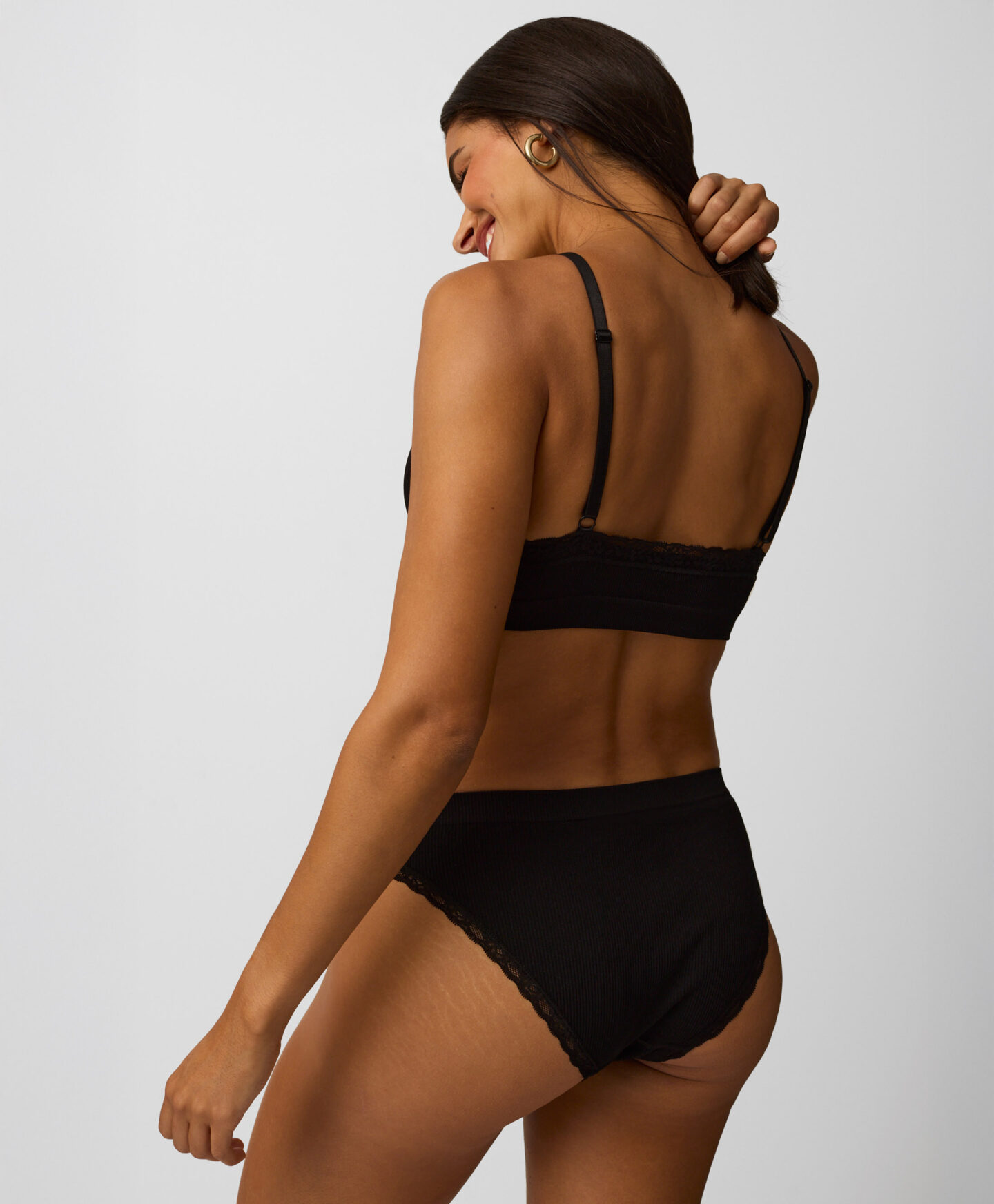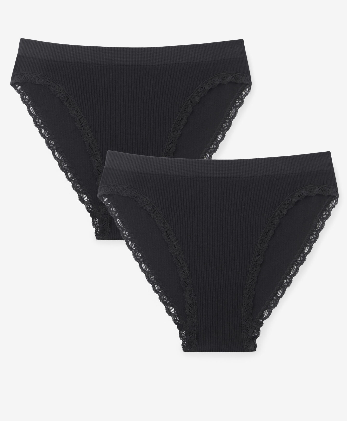 Crne bikini gaćice za žene, pakovanje od 2 komada, savršene su za ljubiteljke romantičnog donjeg veša. Čipka podstiče maštu, a gaćice su savršene za svakodnevno nošenje. Bikini kroj pruža potpunu pokrivenost i udobnost, istovremeno naglašavajući ženstvene obline.