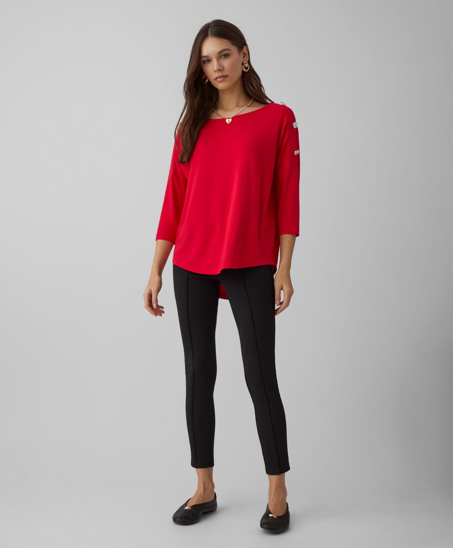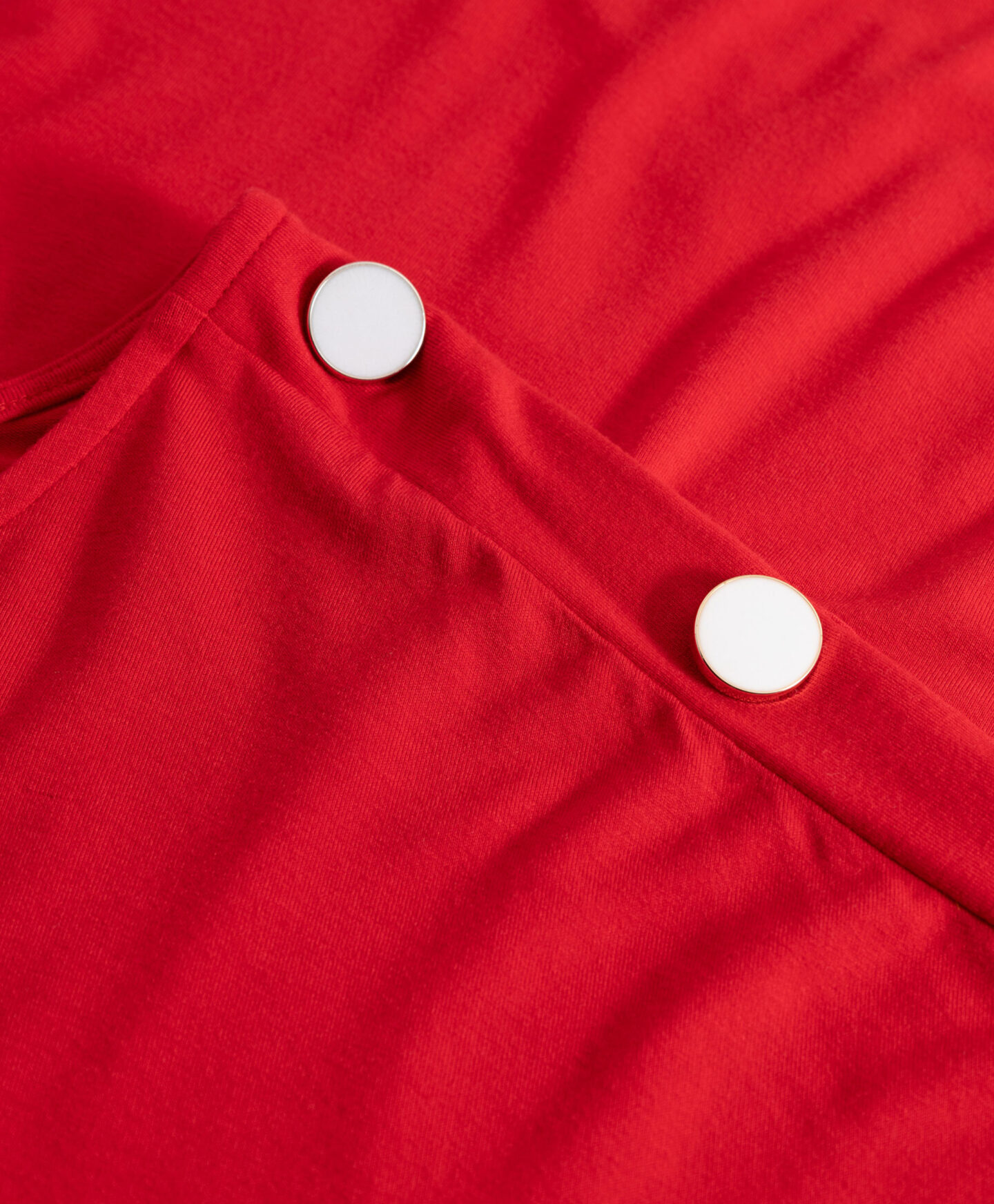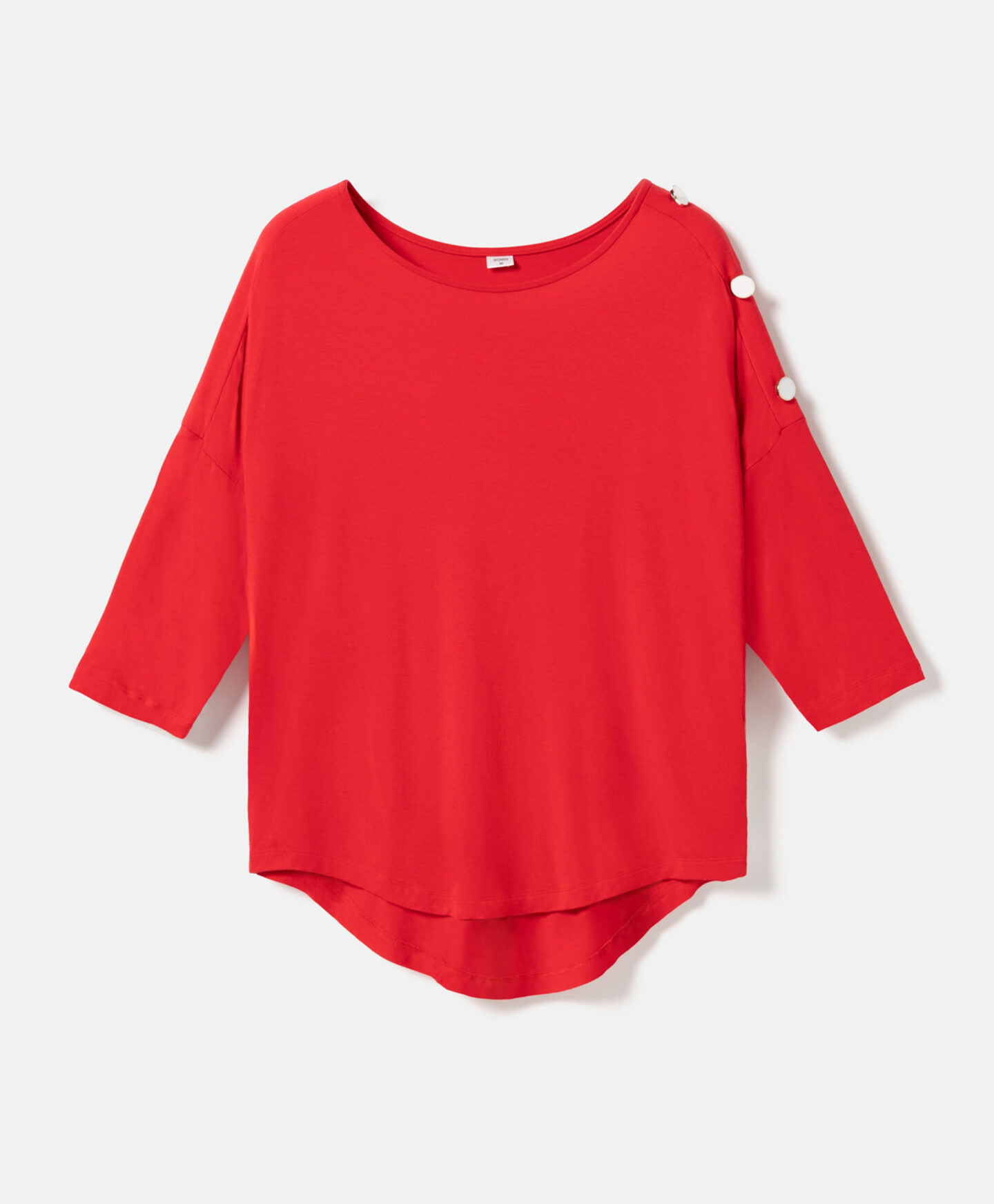 Crvena majica za žene sa visokim sadržajem viskoze kreirana je za žene koje cene stil i udobnost. Njen ležeran kroj i upadljiva boja uklopiće se u svaku garderobu. Majica je idealan izbor za svakodnevno nošenje, posao ili posebne prilike. Dostupna je u dve boje.