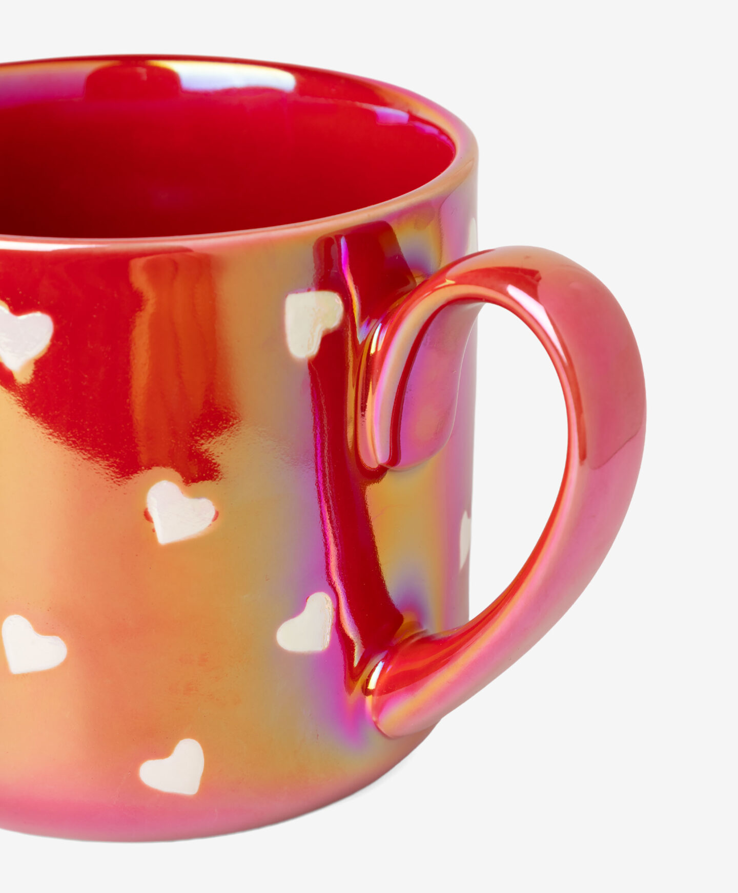 Crvena šolja sa motivom srca i holo efektom izdvaja se među posuđem. Njen romantičan dizajn čini je savršenom za predstojeći Dan zaljubljenih, za uživanje u jutarnjoj kafi ili čaju, ili kao jedinstven poklon za voljenu osobu. Napravljena od izdržljivog porcelana, otporna je na svakodnevnu upotrebu i laka za održavanje. U ponudi su dve boje.