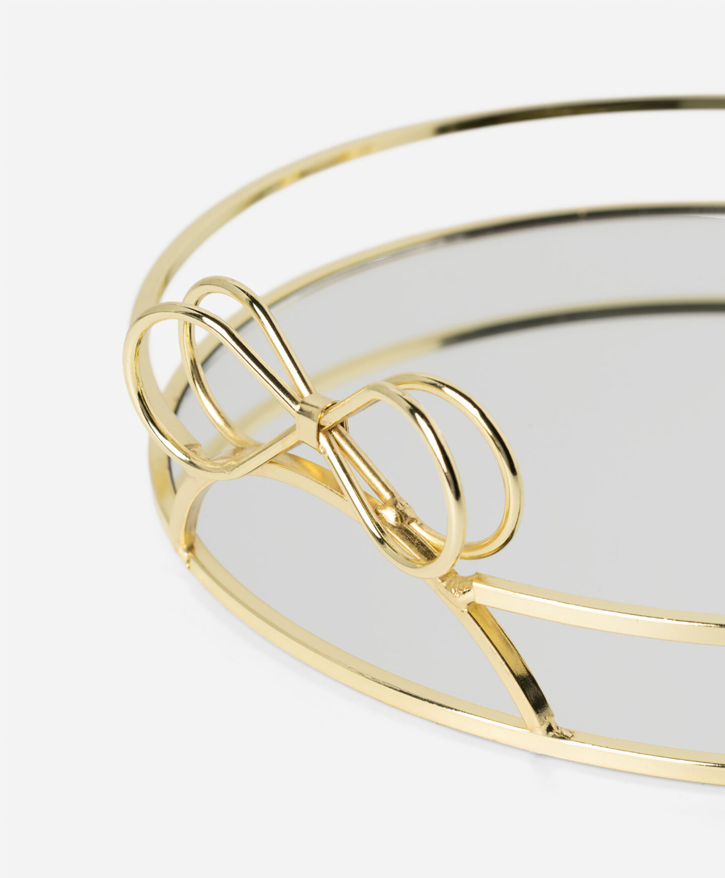 Dekorativni poslužavnik sa mašnama na drškama predstavlja elegantan aksesoar koji će obogatiti svaki enterijer. Dno sa ogledalom čini da poslužavnik izgleda veoma originalno. Savršen je za serviranje kafe ili čaja, ali i kao postolje za vazu ili mirisnu sveću. Poslužavnik je izdržljiv i lak za čišćenje.