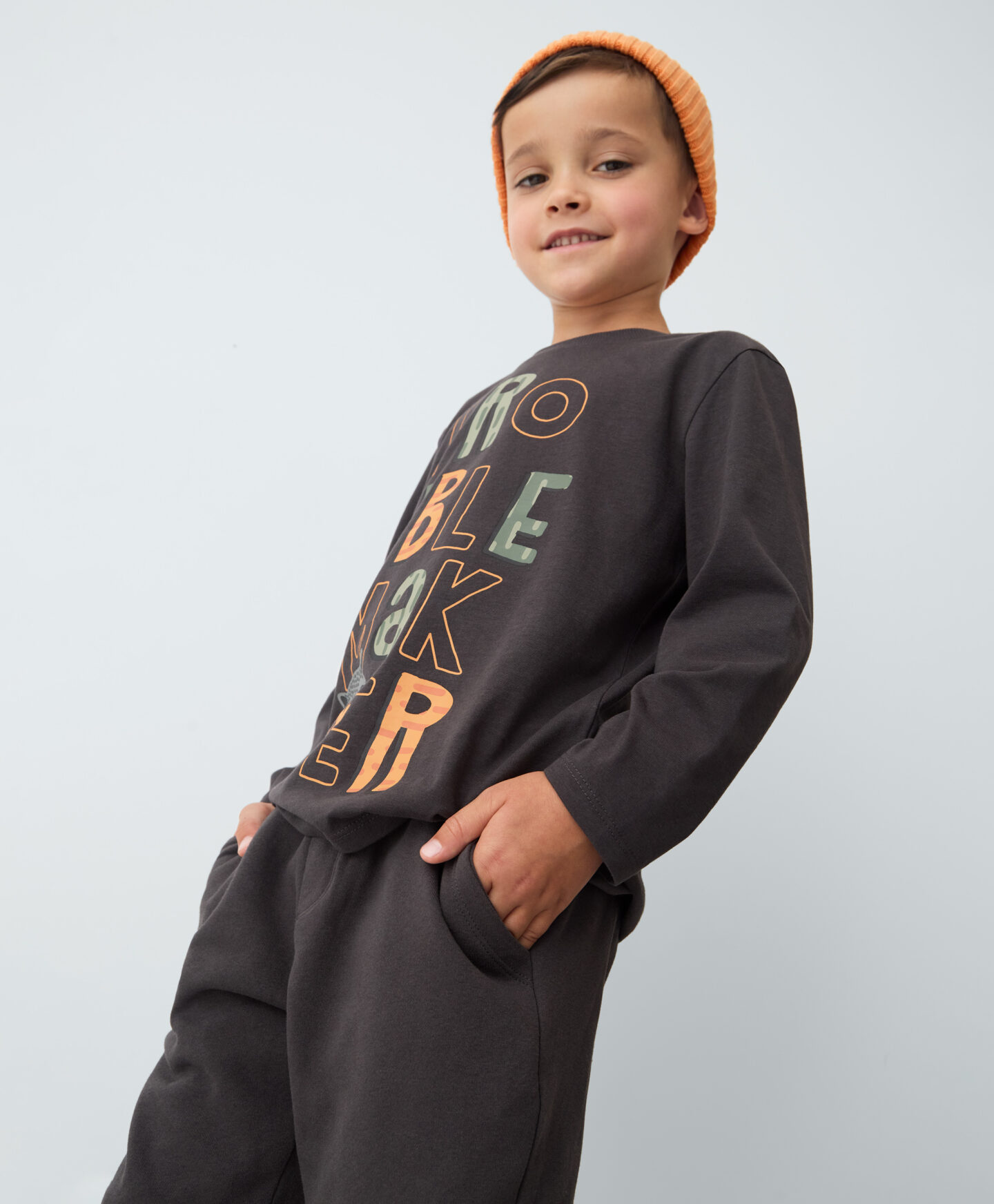 Donji deo trenerke za dečake sa visokim sadržajem pamuka je must-have u svakom jesenjem ormaru. Lastiši na nogavicama pružaju toplinu i udobnost. Prijatan materijal je nežan za kožu i obezbeđuje udobnost pri svakom pokretu. Dostupna je i majica sa dugim rukavima sa kojom se slaže.