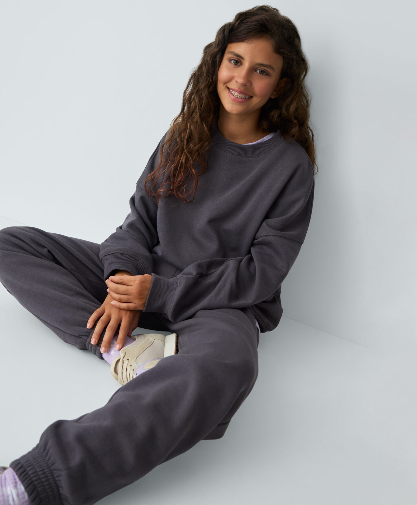 Donji deo trenerke za devojčice sa modernim širokim krojem je obavezan ove sezone. Mekan je, udoban i pruža potpunu slobodu kretanja. Idealan je za školu, sportske aktivnosti ili vikend aktivnosti na otvorenom. U ponudi je i gornji deo trenerke u istoj boji.