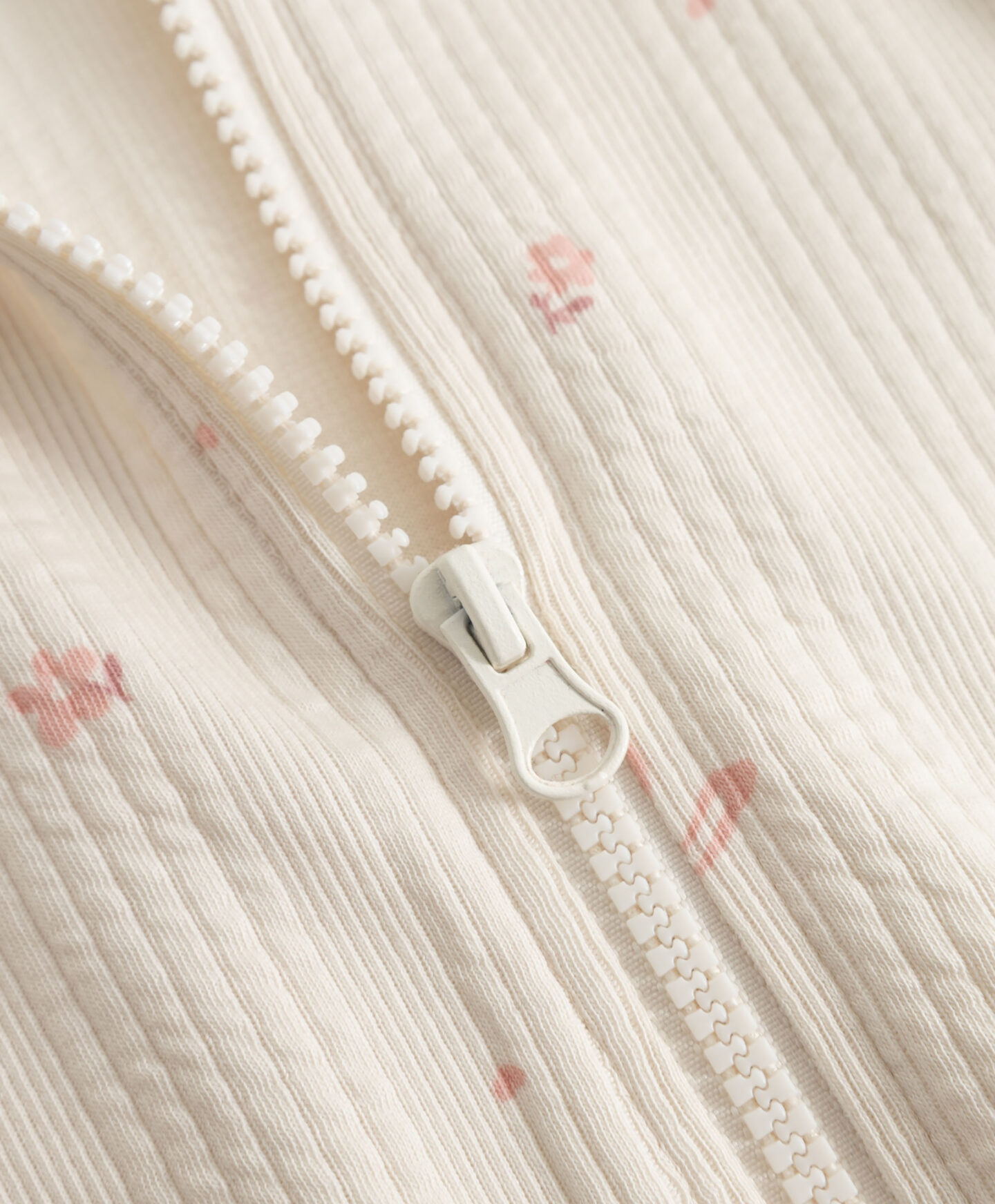 Dukserica sa karnerima za bebe devojčice zakopčava se praktičnim rajsferšlusom, što olakšava oblačenje vaše male princeze. Elastične ranfle pružaju toplinu i udobnost tokom celog dana. Šarmantni motiv zeca uneće radost u vaše zajedničke trenutke i izgledaće predivno na fotografijama. Mekana tkanina sa visokim sadržajem pamuka nežna je prema osetljivoj bebinoj koži i savršena za prve odevne kombinacije.