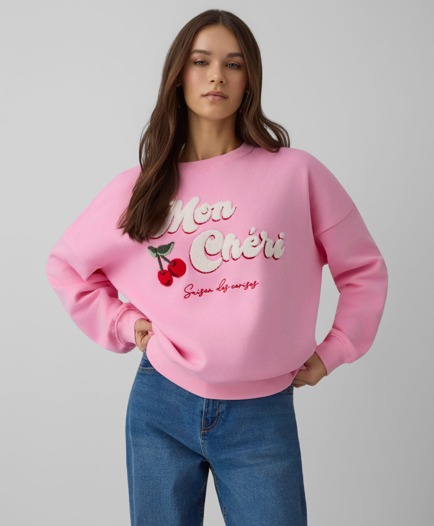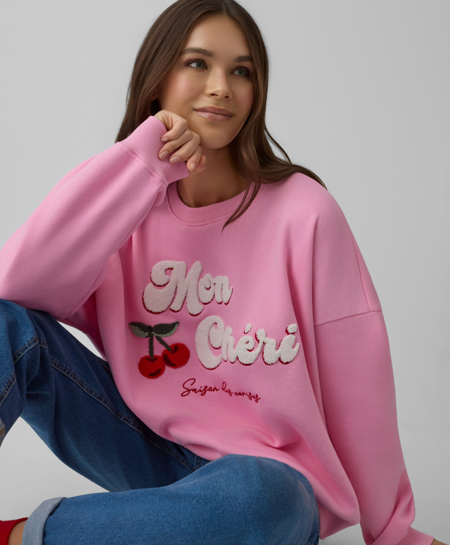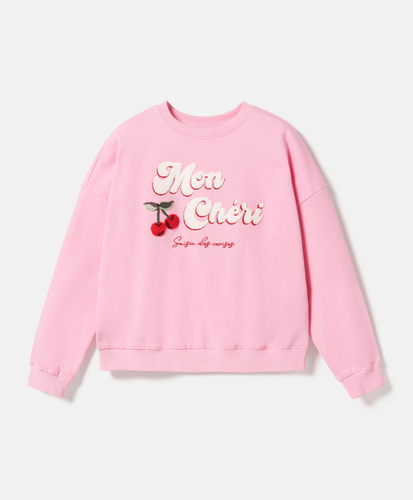 Dukserica za žene sa aplikacijom od frotira u obliku trešnje, napravljena je od mekanog pamučnog materijala. Nežno prijanja uz kožu, topla je, izdržljiva i otporna na pranje. Print trešnje na prednjem delu daje joj poseban šarm. Savršeno se kombinuje i sa farmerkama i sa sportskim pantalonama.