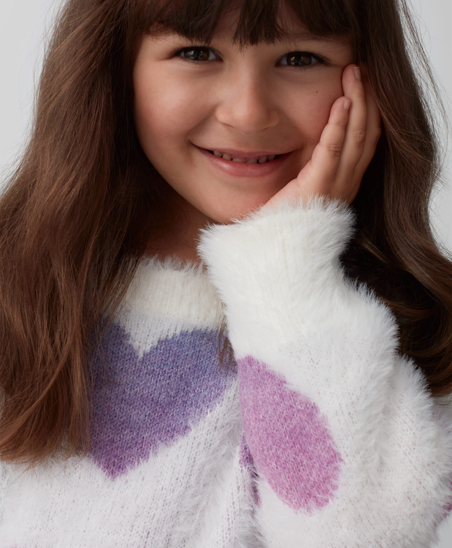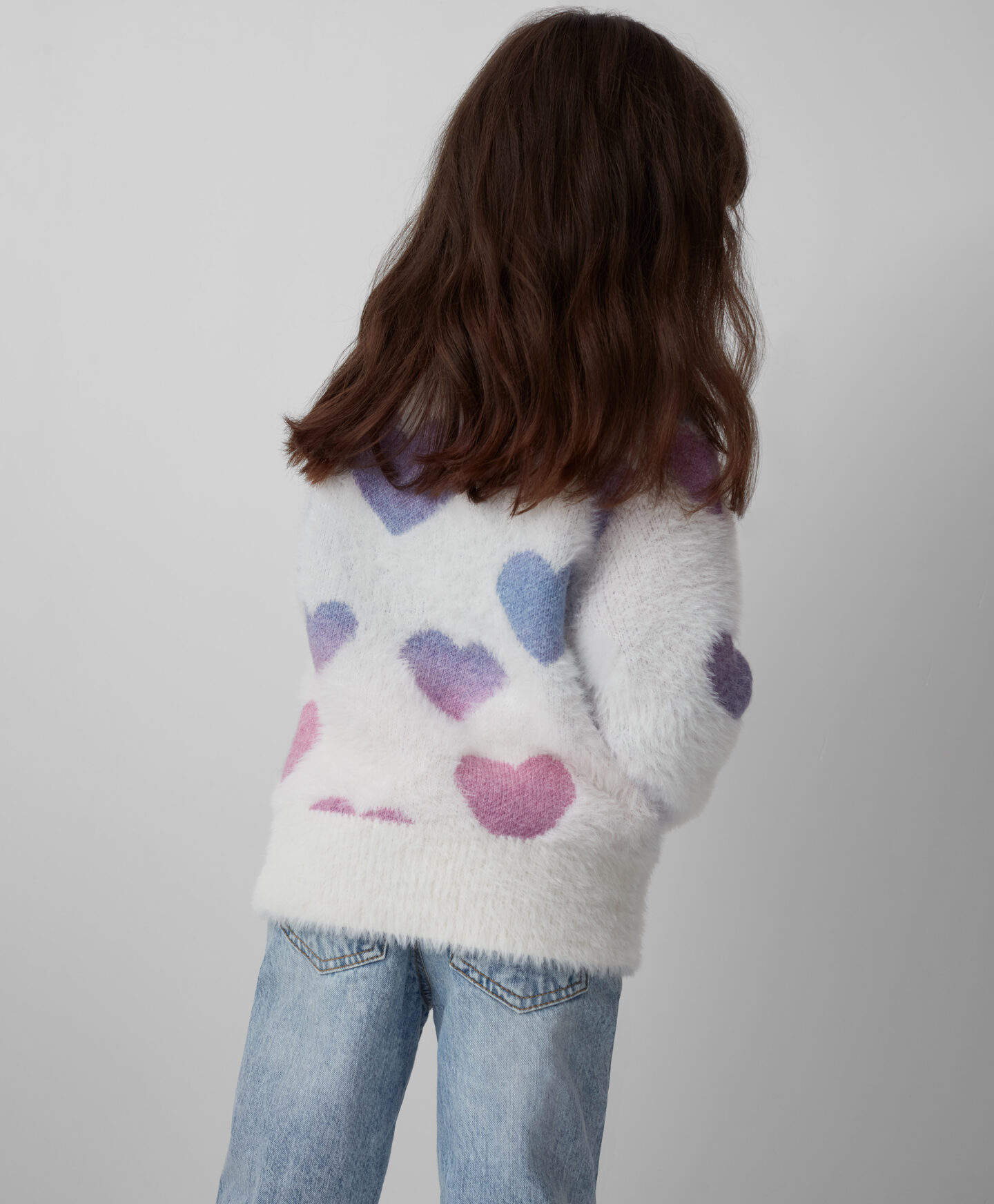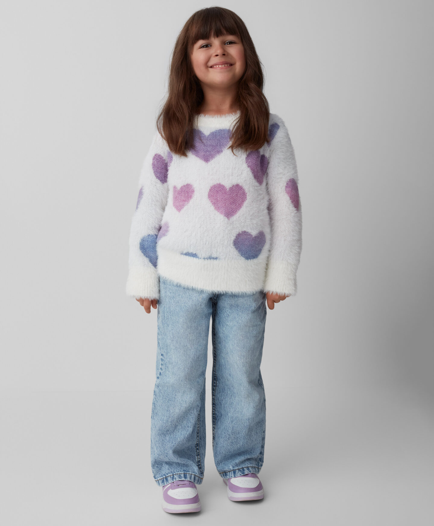 Džemper sa dezenom srca za devojčice je savršen za male ljubitelje udobnosti i topline. Šarmantan dizajn ga čini mekanim i prijatnim na dodir. Idealan je za jesenje i zimske hladne dane i savršen je izbor za vrtić, školu ili slobodno vreme. Odlično se slaže sa farmerkama i helankama.
