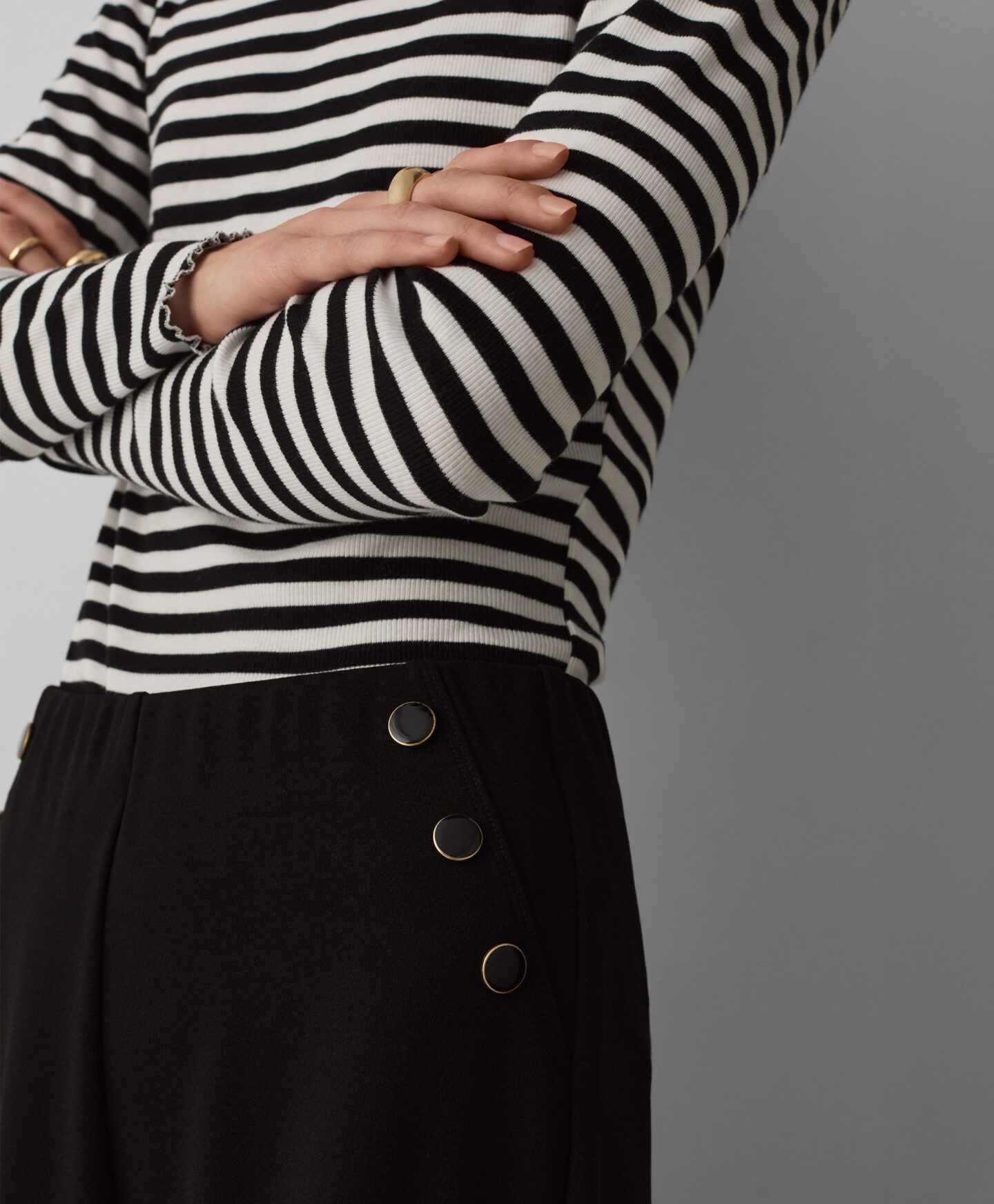 Farmerke sa dekorativnim dugmićima za žene sa širokim nogavicama omogućiće vam da ostavite utisak i na poslu i na formalnijim okupljanjima. Udobne su, lagane i prijatne za nošenje. Dekorativni dugmići privlače pažnju i moderan su detalj u svakom autfitu. Široke nogavice nude slobodu pokreta.