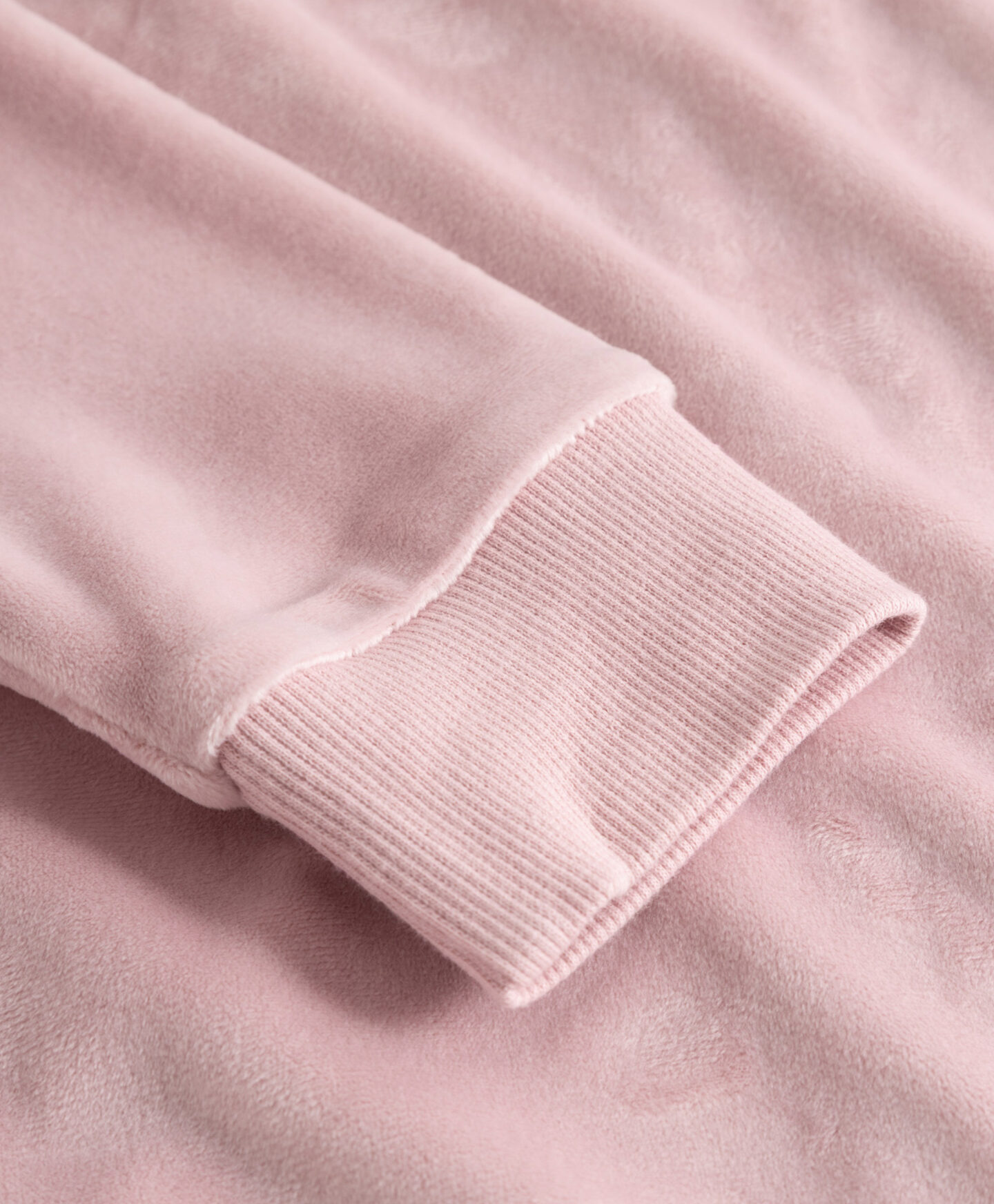 Gornji deo trenerke za devojčice od velura savršen je izbor za devojčice koje vole da se osećaju udobno. Duboka, prijatna kapuljača štiti od vetra i hladnoće, dok trenerci daje moderan, ležeran izgled. Materijal se lepo presijava na svetlu, izdržljiv je i izuzetno mekan na dodir.