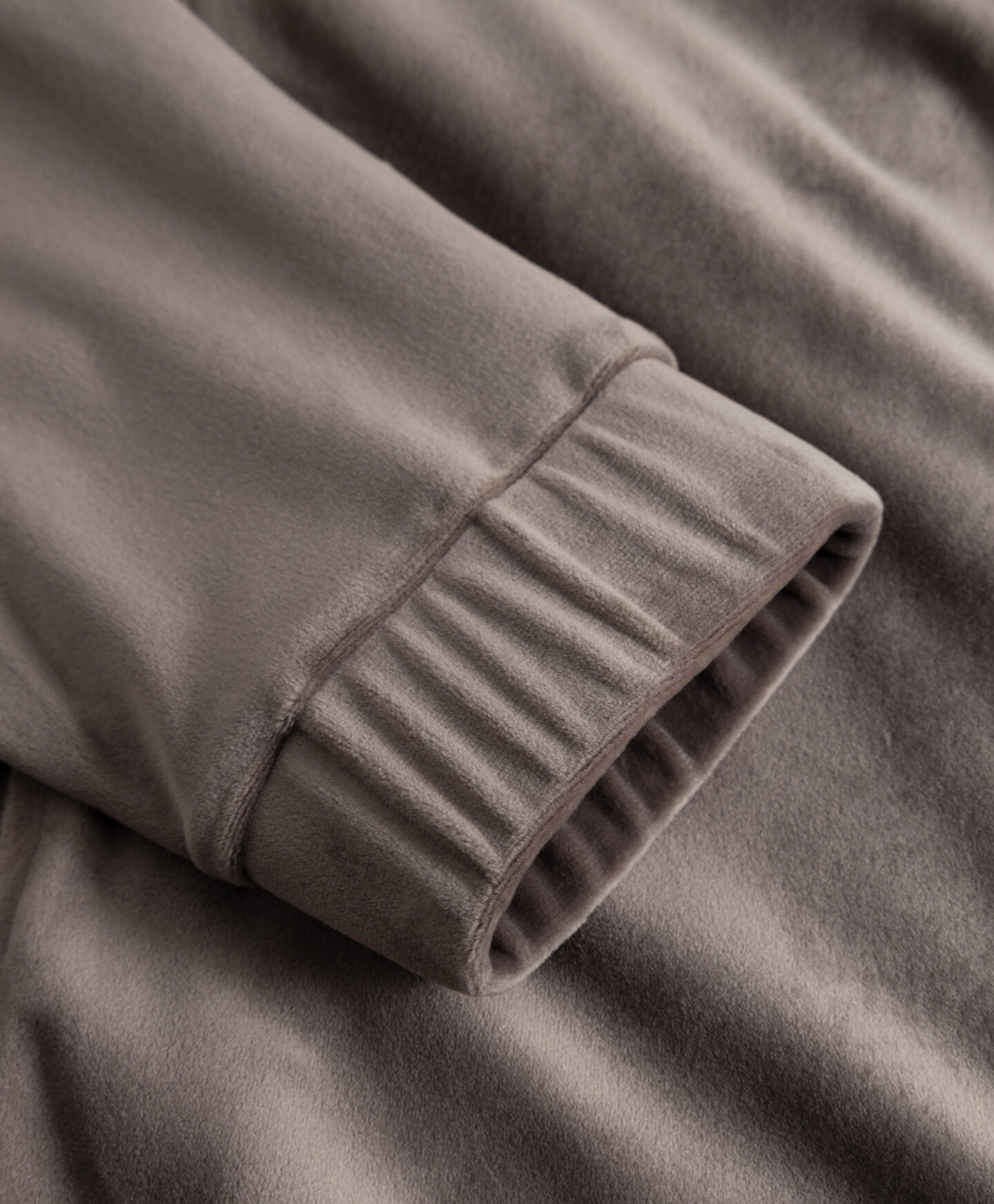 Gornji deo trenerke za žene od velura savršen je za žene koje žele da izgledaju stilizovano čak i kod kuće ili u ležernim prilikama. Velur je izuzetno mekan na dodir, otporan na gužvanje i lepo pada. Praktičan rajsferšlus omogućava brzu promenu stila – nosite ga zakopčanog kao klasičan duks ili otkopčanog preko topa za sportsko-elegantan izgled.