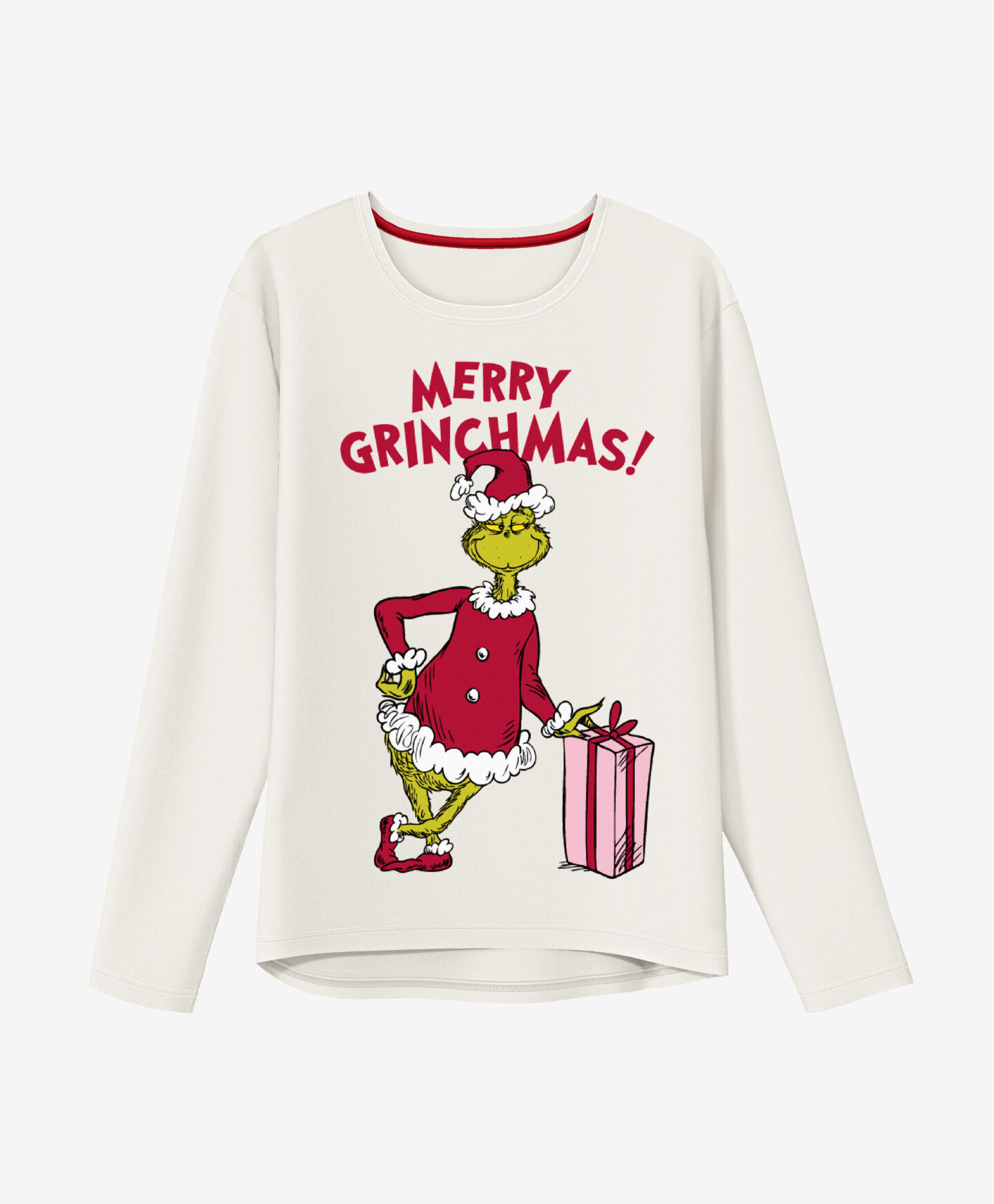 Grinch licencirana pidžama za žene, napravljena od 100% pamuka, sastoji se od majice dugih rukava sa slikom kultnog zelenog lika na prednjoj strani i pantalona sa prazničnim dezenom. Napravljena od prirodnih vlakana, osigurava vam udoban san u jesenjim i zimskim noćima. Pidžama će takođe biti dobra ideja za poklon za svakoga ko ceni udobnost.