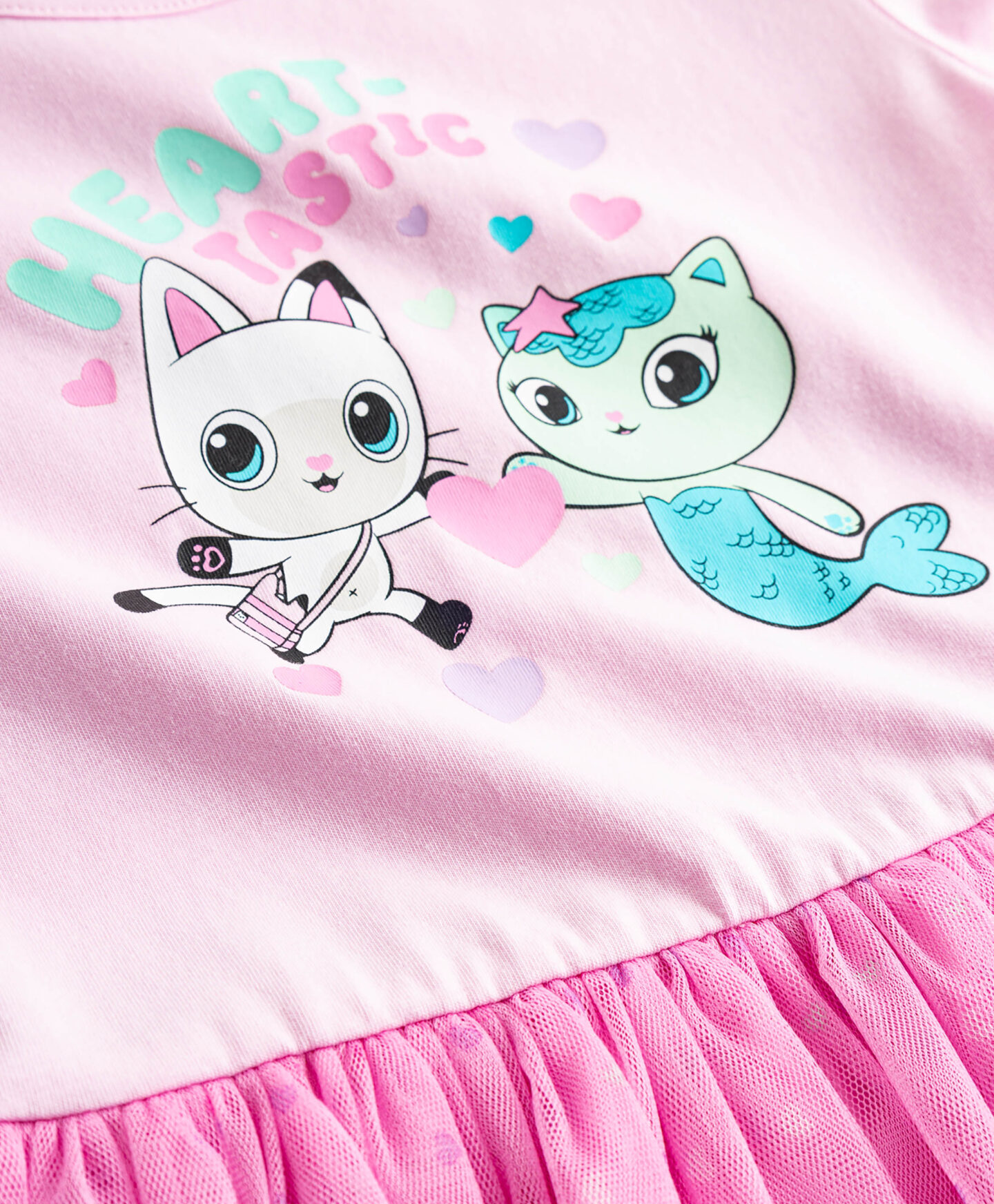 Haljina za devojčice Gabby’s Dollhouse ima donji deo od tila koji joj daje lakoću i bajkovit izgled. Motiv omiljenih crtanih likova na prednjoj strani privlači pažnju i izdvaja je od ostalih komada garderobe. Ovo je već spremna odevna kombinacija idealna za vrtić ili porodična slavlja.
