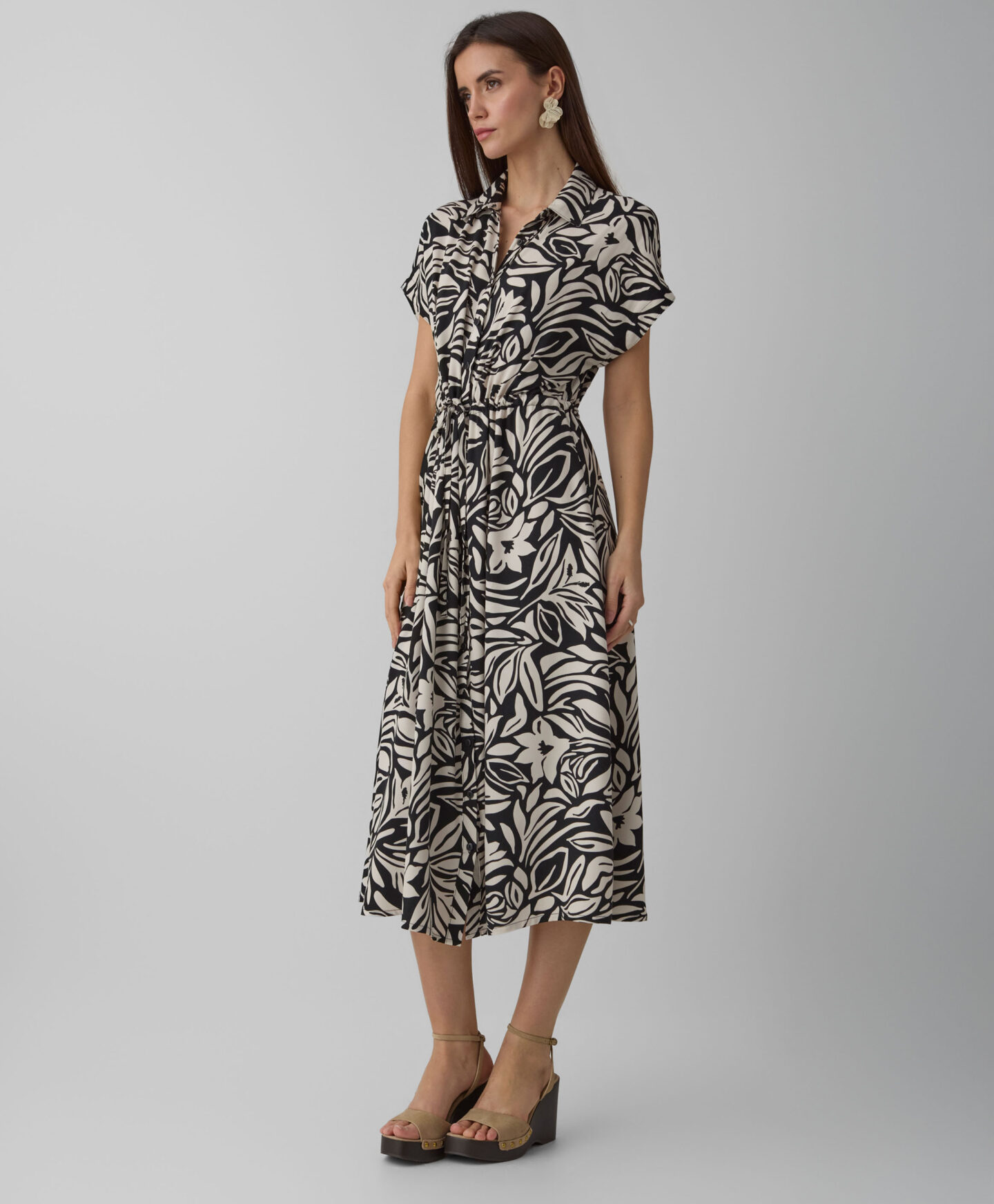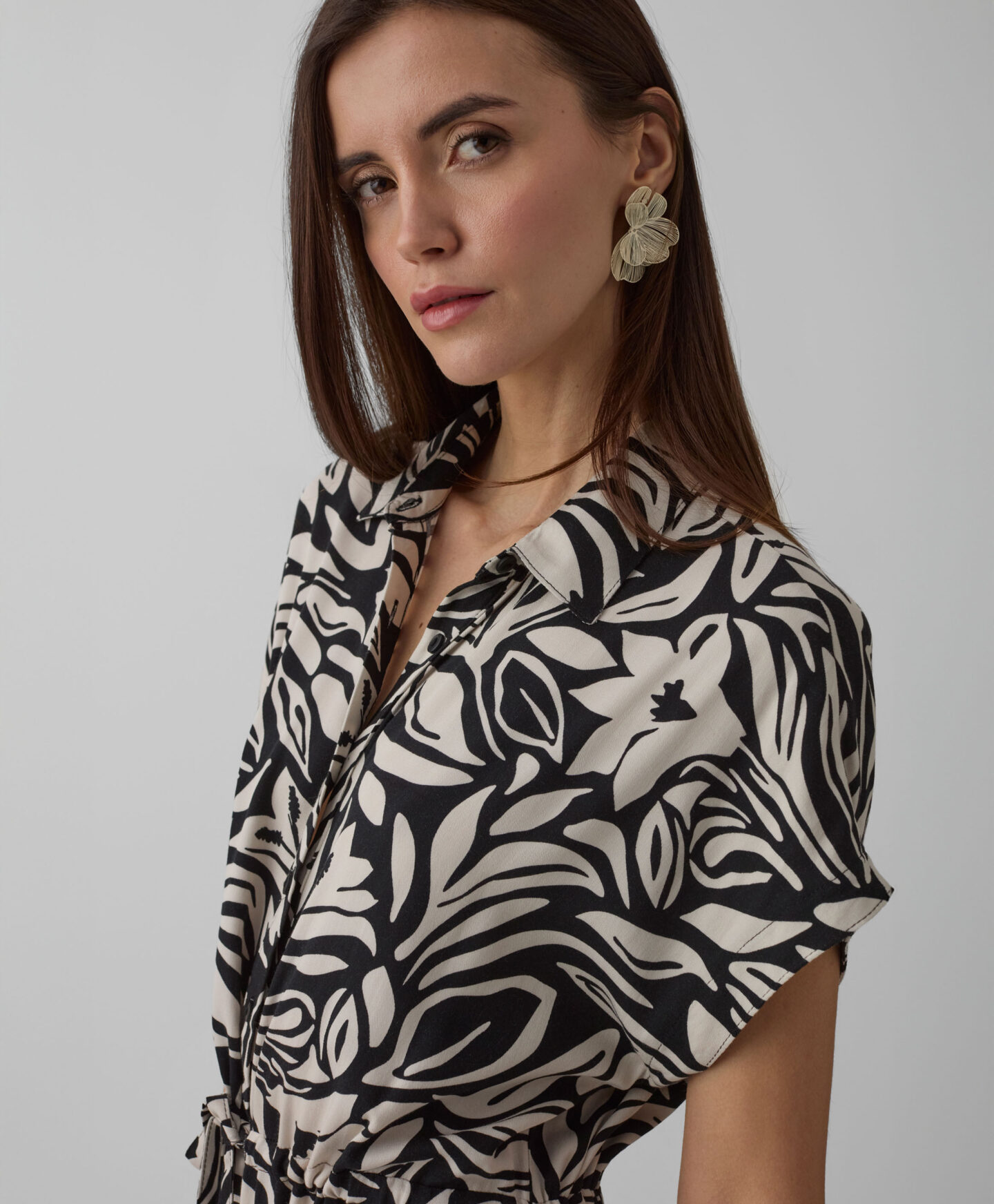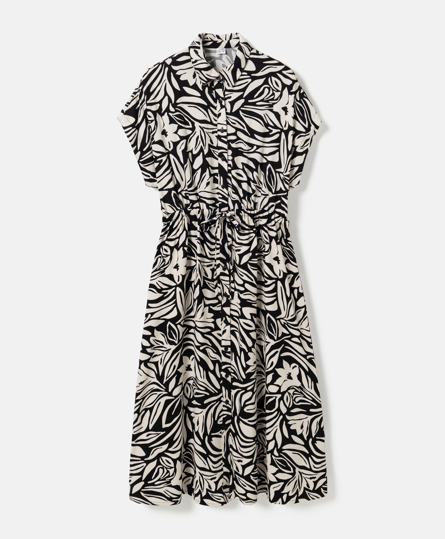 Haljina za žene od 100% viskoze ističe se prelepim dezenom. Napravljena je od materijala prijatnog na dodir, i obezbeđuje udobnost i u toplim i u hladnim danima. Kratak rukav se odlično uklapa u prelaznim sezonama u kombinaciji sa džemperima ili jaknama, a samostalno se može nositi u toplim danima. Univerzalni kroj sa mašnom savršeno se prilagođava različitim tipovima tela.