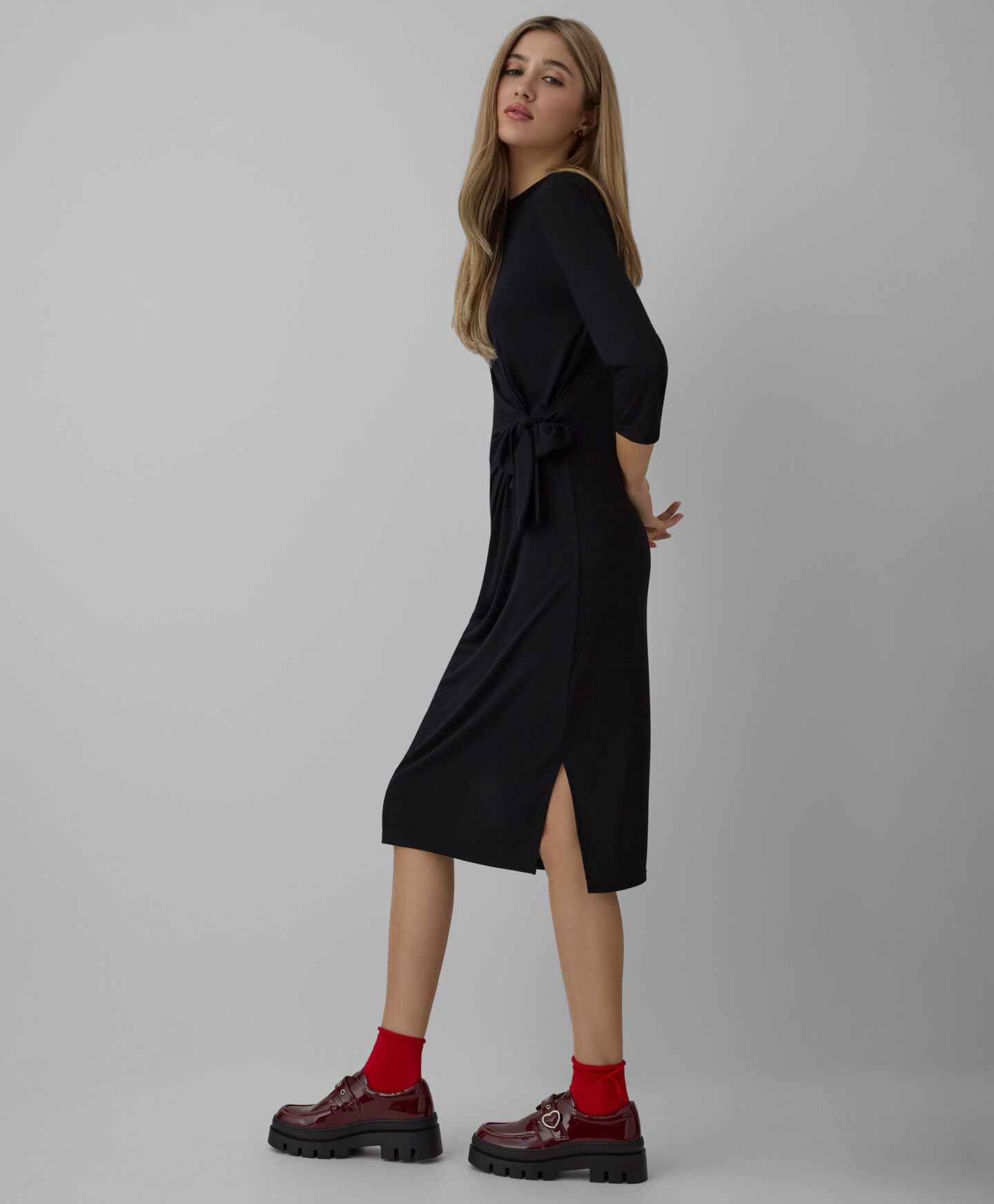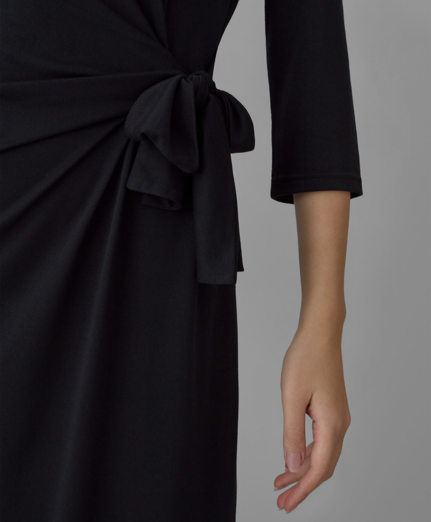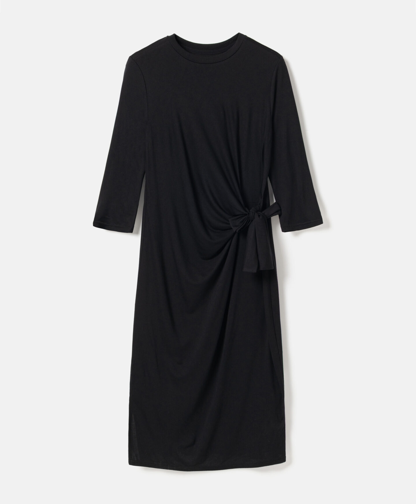Haljina za žene sa trakom za vezivanje napravljena je od tkanine sa viskozom, i odličan je izbor za posebne prilike. Klasična crna boja daje eleganciju svakoj kombinaciji. Haljina je mekana na dodir i lepo ističe figuru. Možete je kombinovati i sa elegantnim cipelama na štiklu i sa ravnim čizmama.