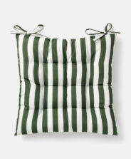 Vodootporni jastuk za sedenje na pruge pruža udobnost tokom boravka na otvorenom. Izrađen je od mekog i prijatnog materijala koji svaku stolicu pretvara u udobno mesto za sedenje. Klasičan prugasti dezen unosi moderan izgled u uređenje balkona. Vodootporni premaz štiti jastuk od kiše, rose i prljavštine i olakšava njegovo održavanje. Jastuk ima trake za pričvršćivanje za stolicu. U ponudi su dostupna dva dezena.