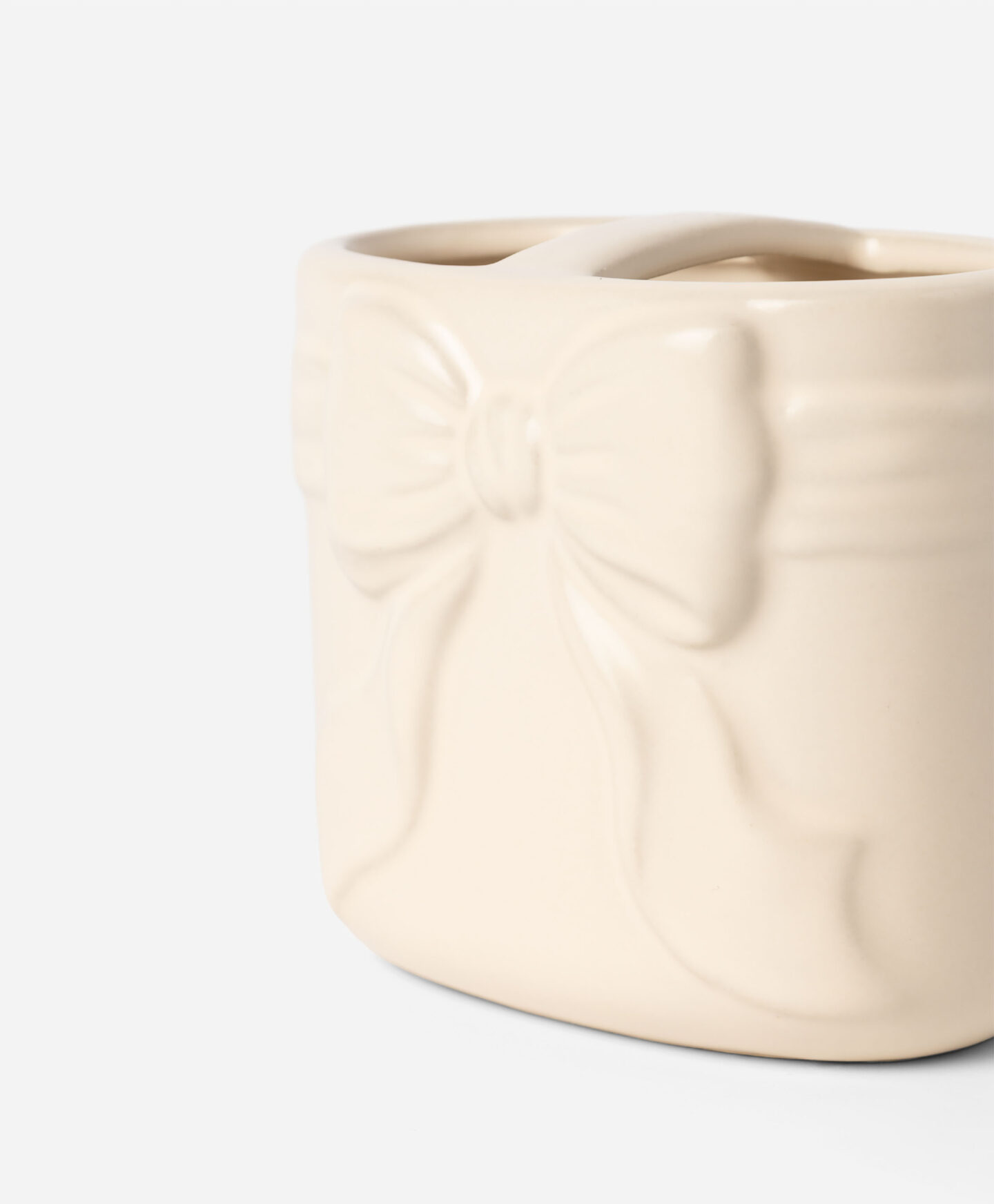 Keramički držač za četkice za zube sa mašnom ima dva prostrana odeljka i atraktivan dizajn. Motiv mašne savršeno se uklapa sa ostalim aksesoarima za kupatilo iz iste kolekcije. Napravljen od keramike, držač je izdržljiv, otporan na svakodnevnu upotrebu i lak za čišćenje.
