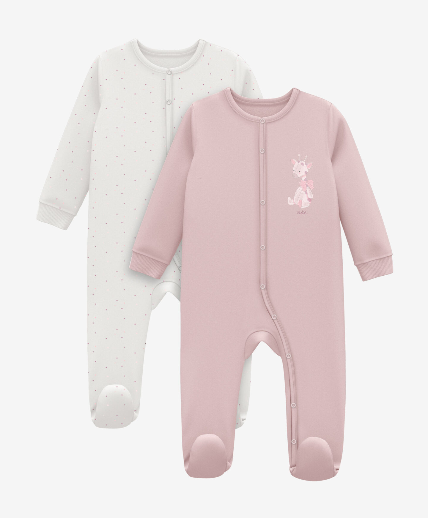 Kombinezon sa dezenom žirafe za bebe devojčice, pakovanje od 2 komada 100% pamuk savršen je izbor za nežnu kožu male devojčice. U potpunosti napravljen od pamuka, pruža udobnost tokom igre ili spavanja. Praktično kopčanje celom dužinom kombinezona čini oblačenje i presvlačenje bebe brzim i lakim. Sladak dezen sa žirafama i tufnicama svideće se svakom malom ljubitelju prirode. Dostupni su i drugi dezeni.