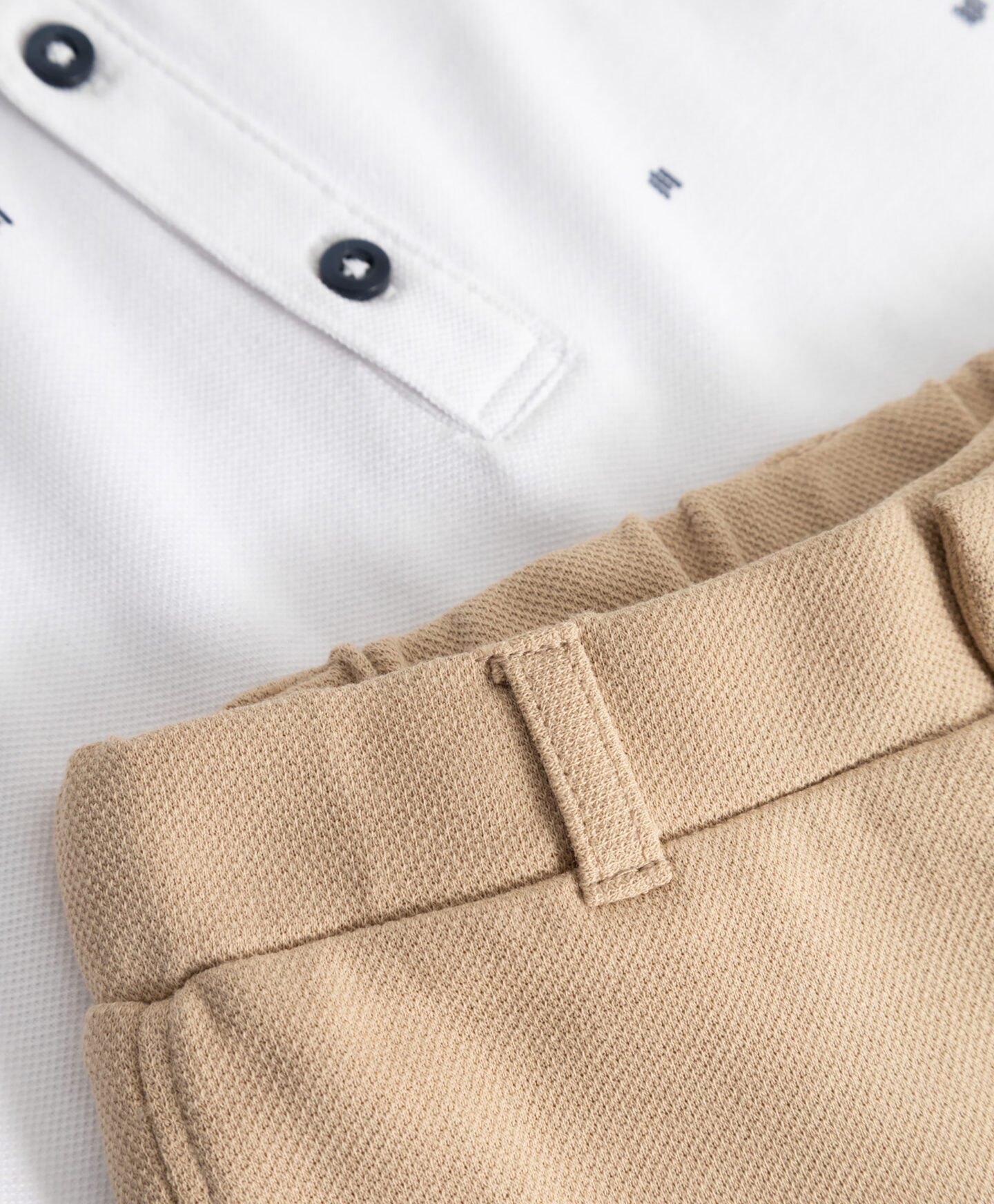 Ovaj komplet za bebe dečake sadrži udobne pantalone i polo majicu. To je spremna kombinacija za vašeg mališana, koju možete dopuniti kardiganom tokom hladnijih dana. Mekani materijali prijatni za kožu čine ga savršenim izborom već od prvih dana života. Idealan je kako za svakodnevno nošenje, tako i za posebne prilike. Ujedno predstavlja i odličnu ideju za poklon malom šarmeru.
