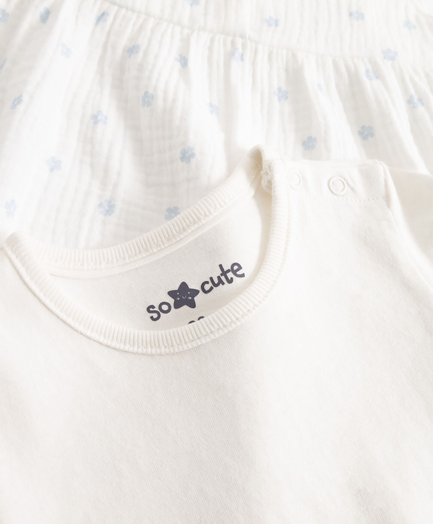 Dvodelni komplet za bebe devojčice od 100% pamuka dizajniran je za sve male dame. Komplet se sastoji od praktičnog pamučnog bodija i haljine od muslina. Bodi je odličan kao osnova ispod haljine. Haljina od muslina je lagana i prozračna, a preslatki rukavi u obliku leptira daju joj lepršav i nežan izgled.