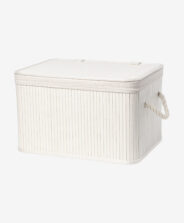 Korpa od bambusa sa poklopcem pomoći će vam da lakše organizujete prostor u svom domu. Klasičan dizajn, neutralna boja i prirodni materijali čine je savršenim dodatkom različitim stilovima enterijera – kako minimalističkim, tako i eklektičnim. Dostupna je u više veličina.