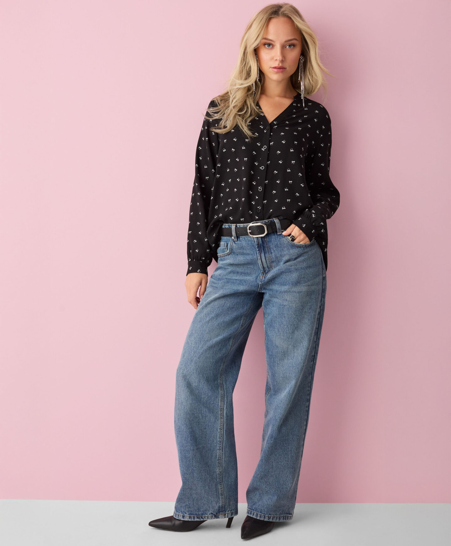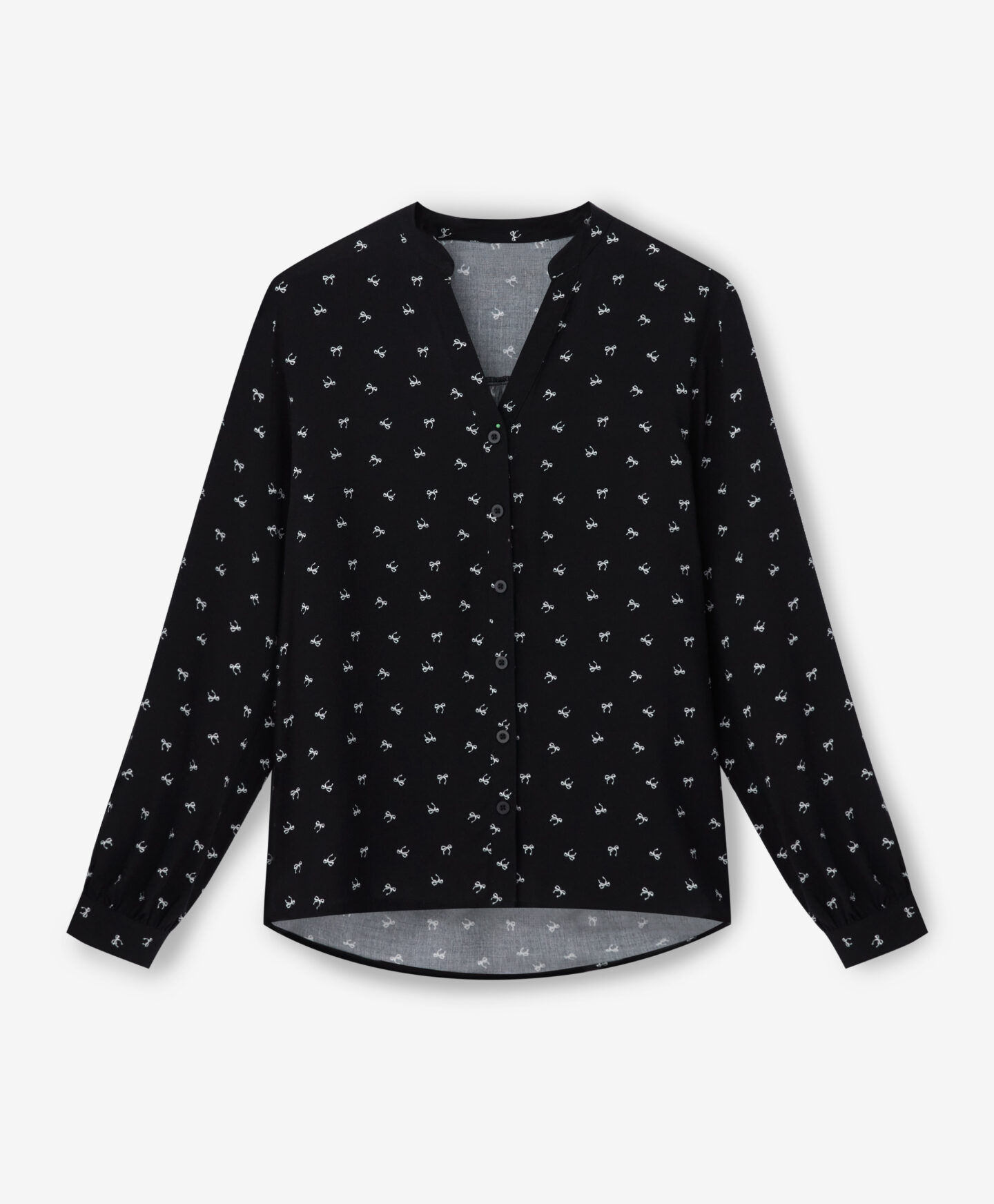 Košulja sa dugim rukavima za žene 100% viskoza ukrašena je suptilnim dezenom sa mašnicama. Lagana je, prozračna i romantična. Savršena je ne samo za svakodnevno nošenje, već i za specijalne prilike. Zahvaljujući prozračnoj viskozi, idealan je izbor za nošenje ispod sakoa, džempera ili kardigana.