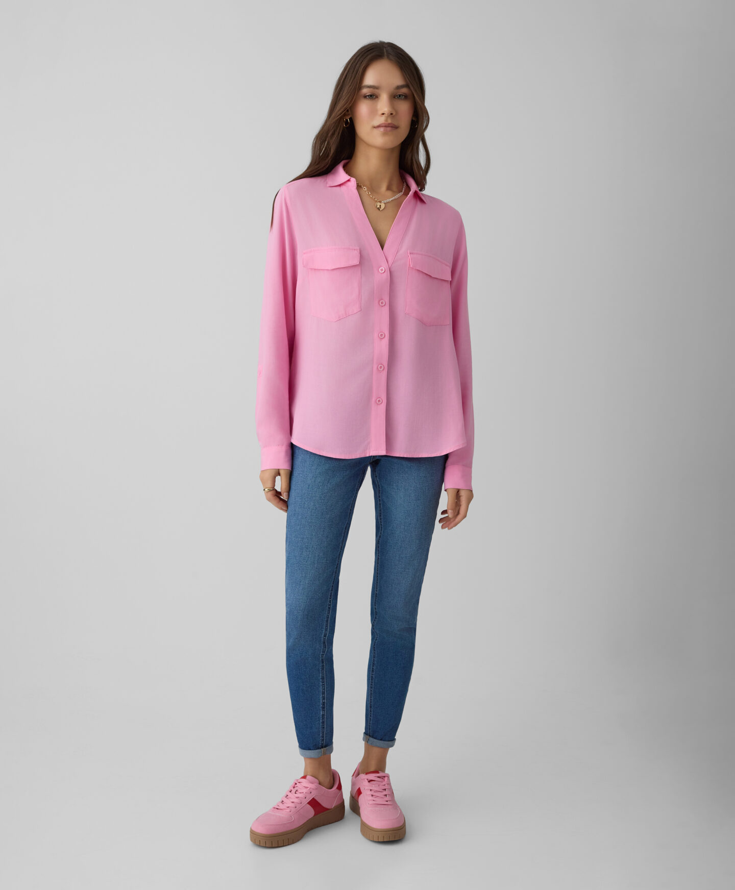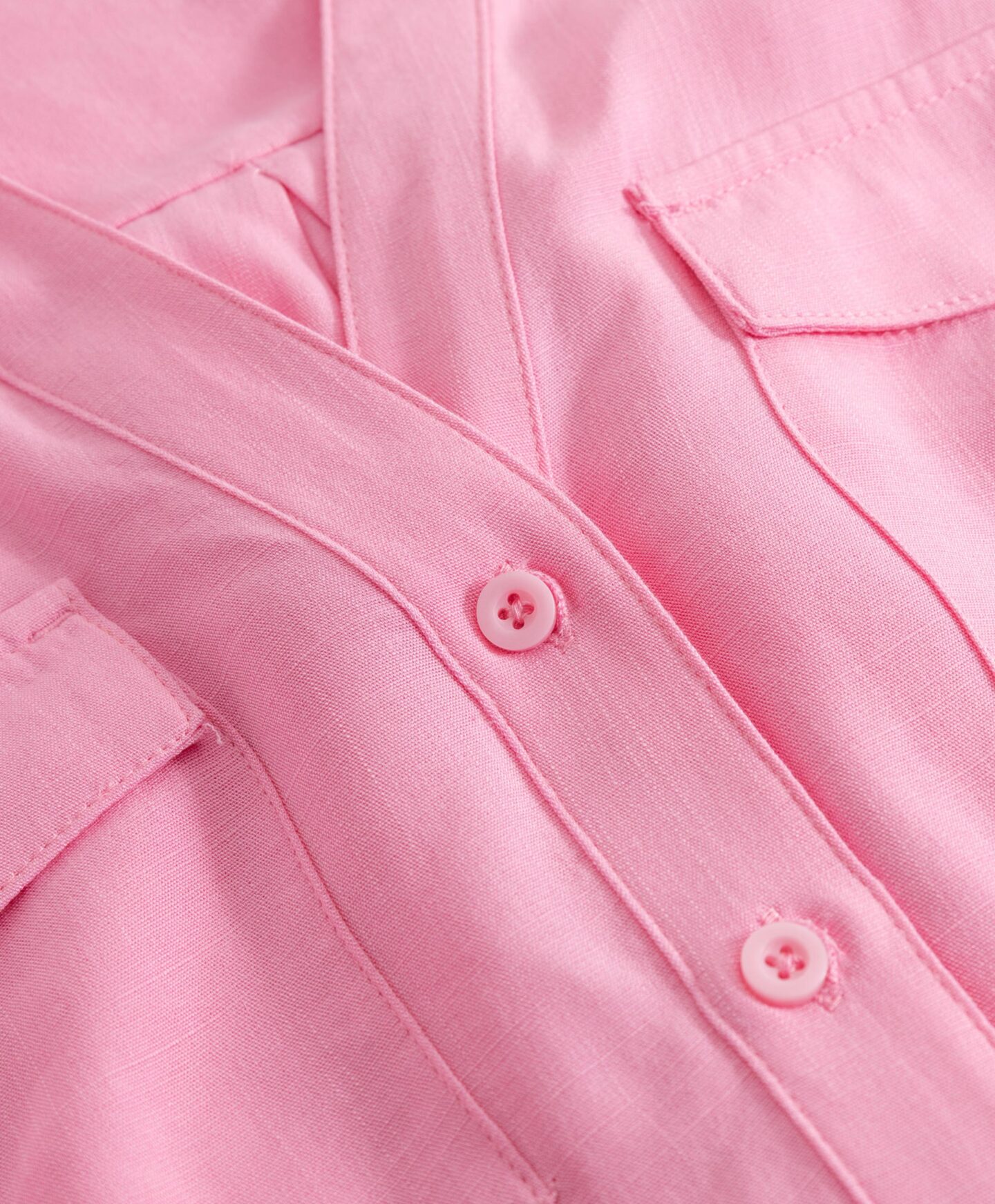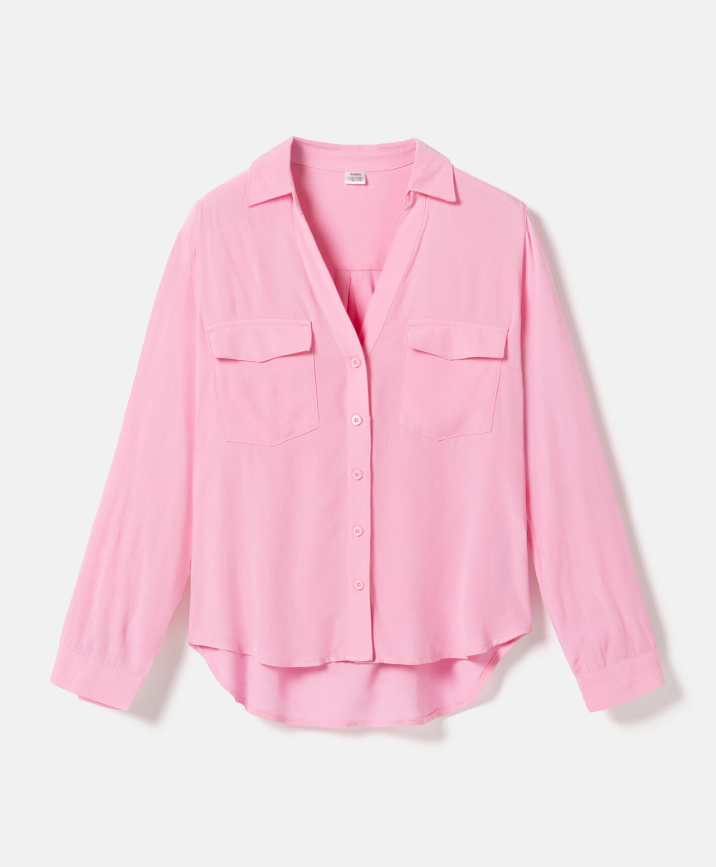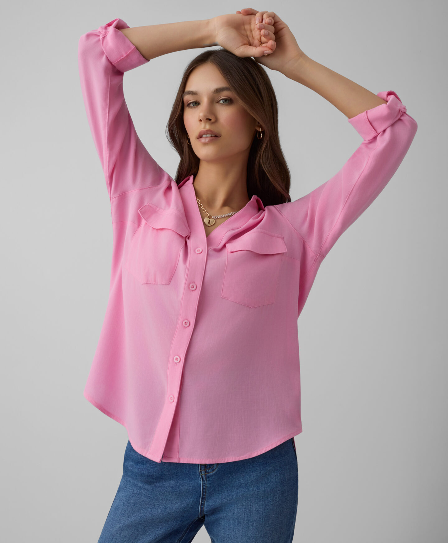 Košulja za žene 100% viskoza sa džepovima, u roze boji, savršena je kako za svakodnevno nošenje, tako i za posebne prilike. Prozračna je, mekana i lepo se prilagođava telu. Dva prednja džepa daju joj poseban karakter.