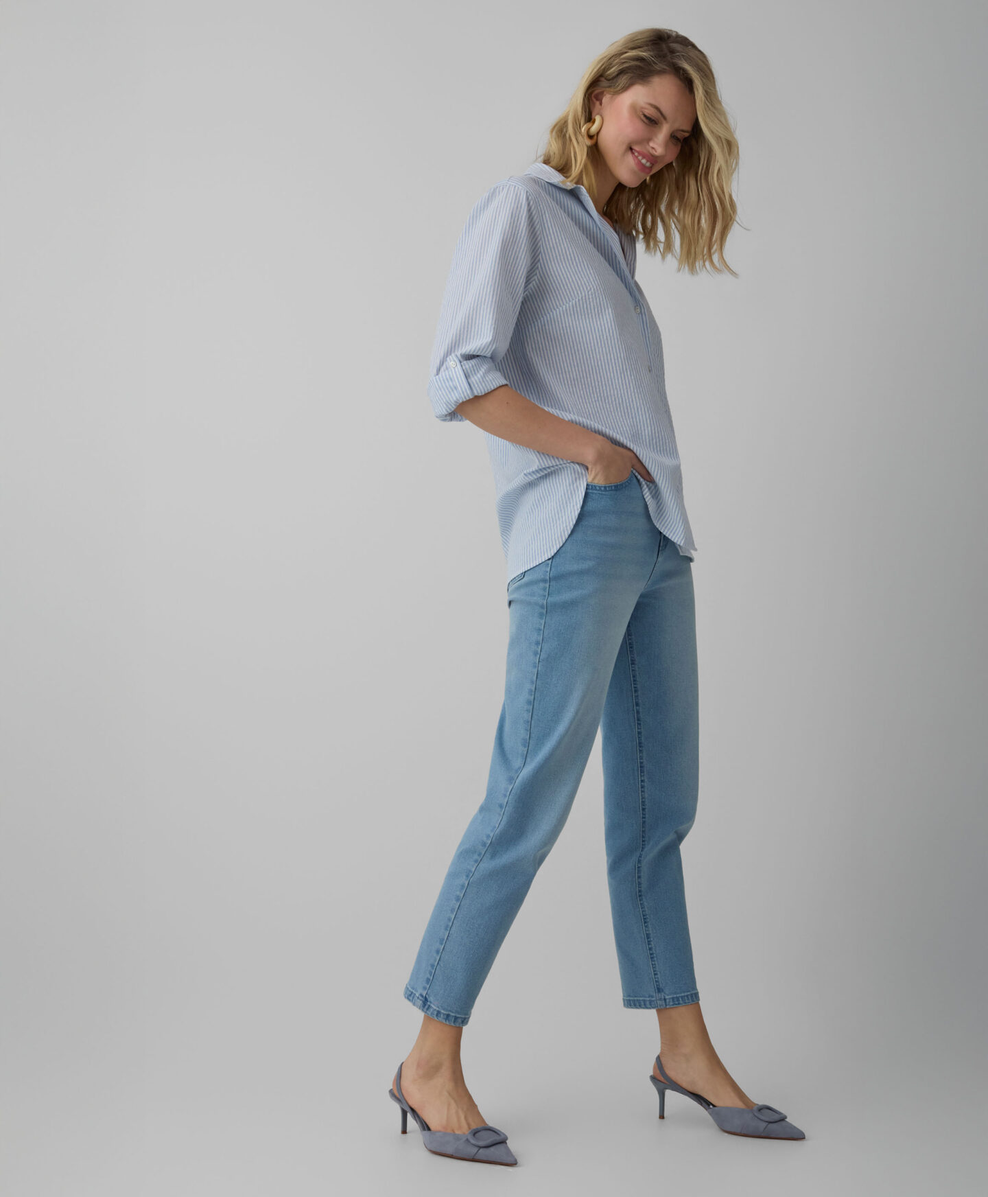 Košulja za žene je napravljena od lagane tkanine s pamukom. Karakteriše je postojana neujednačena tekstura koju nije potrebno peglati. To je idealan komad u svim sezonama.