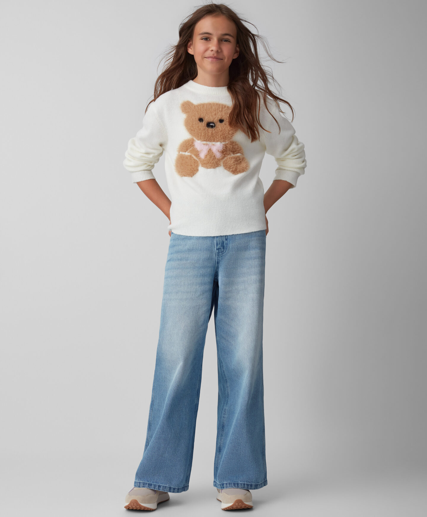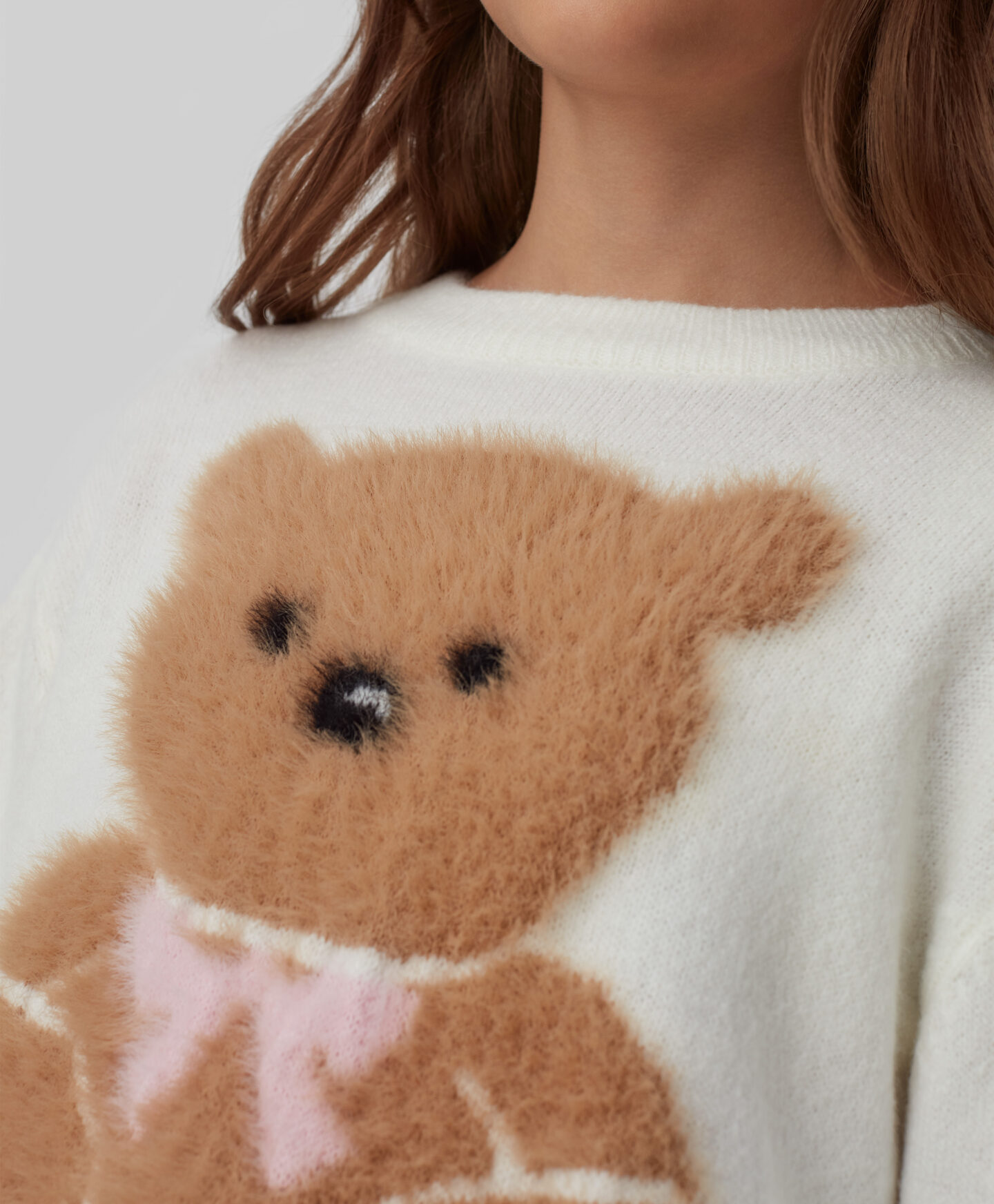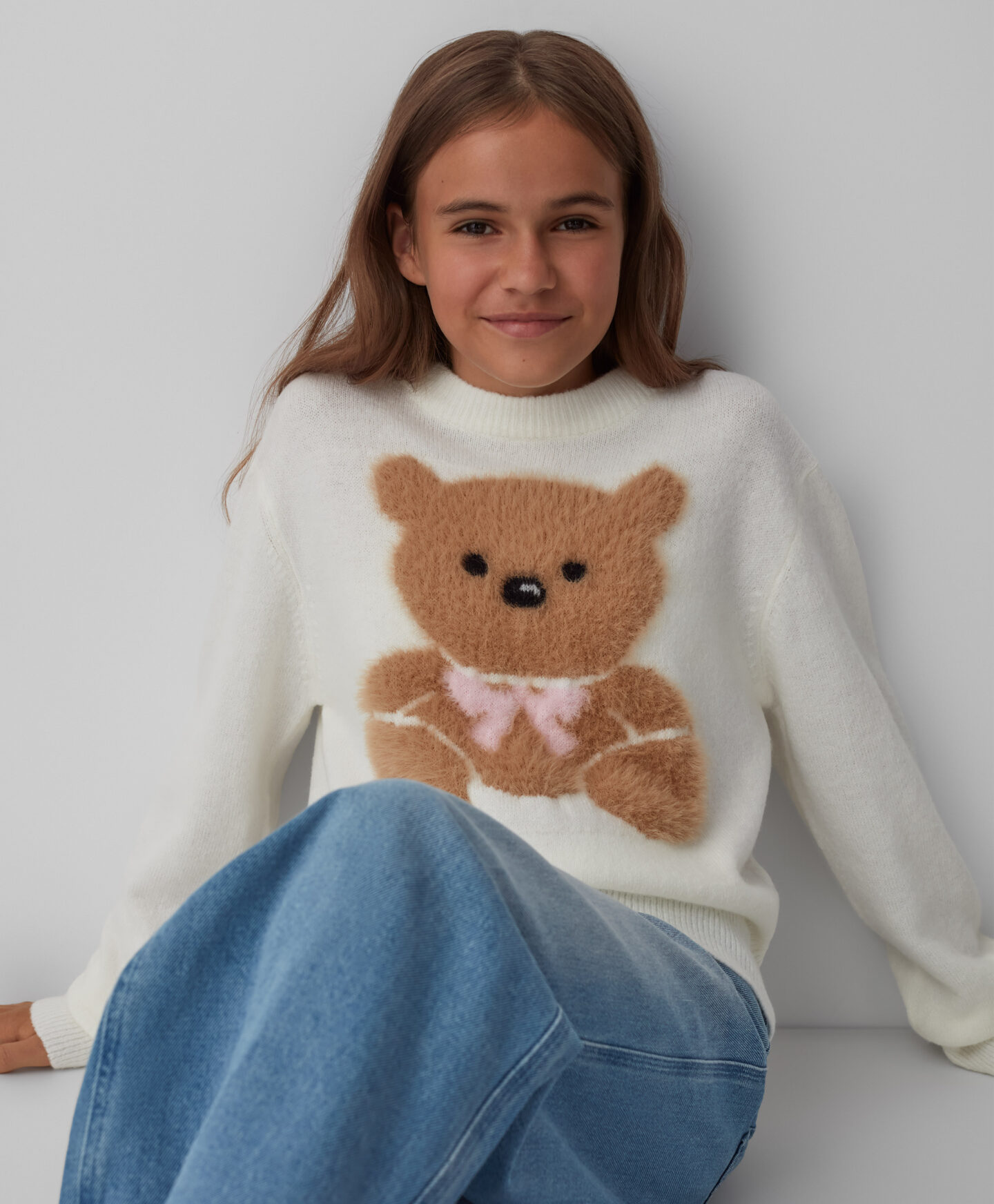Krem džemper za devojčice biće apsolutni hit ove jeseni i zime! Presladak dizajn sa motivom medvedića na prednjoj strani biće šarmantan detalj svakom autfitu. Odlično se slaže sa farmerkama, helankama ili suknjom, što ga čini savršenim za svakodnevno nošenje u školu.