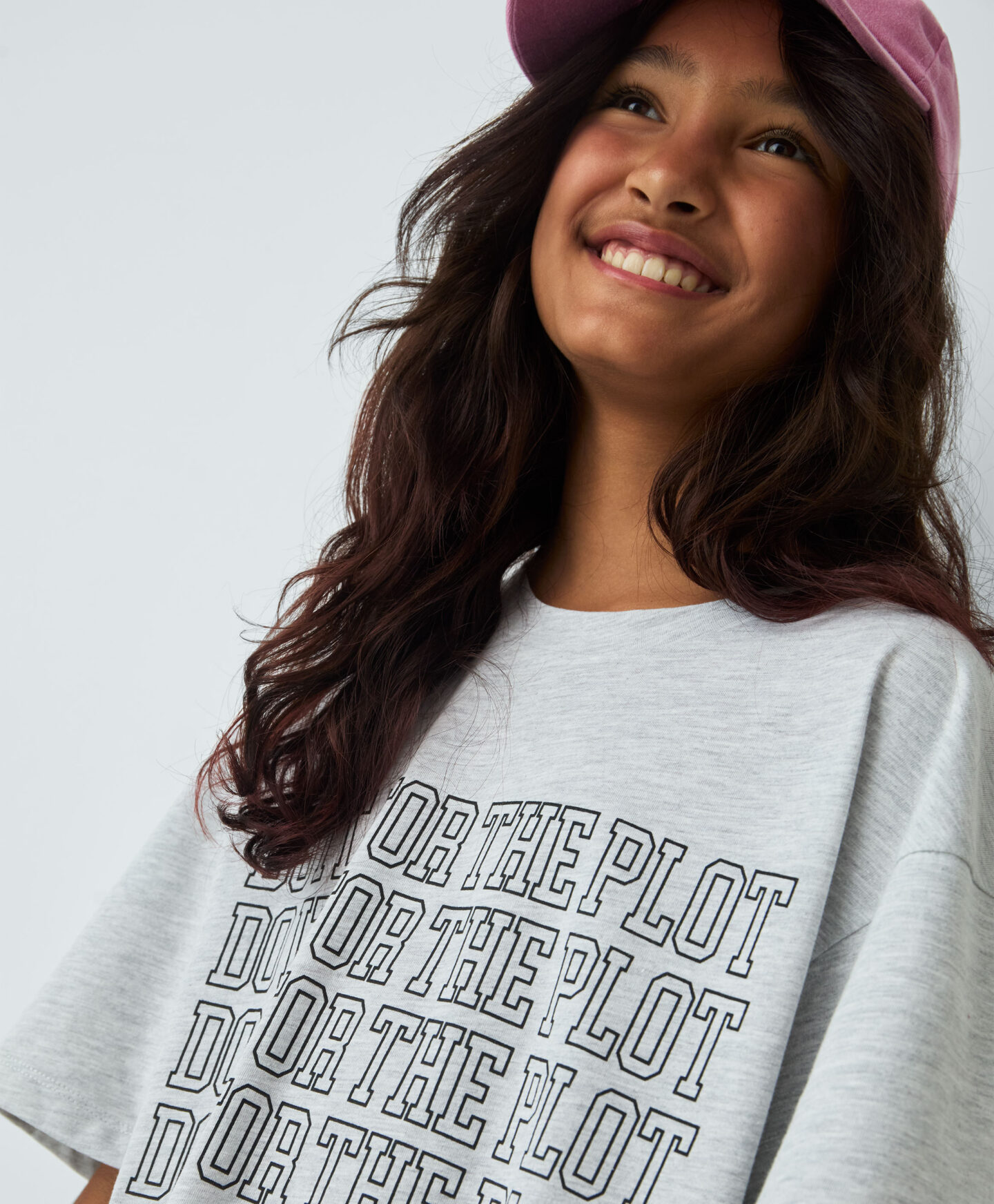 Majica za devojčice sa printom, od 100% pamuka, obećava dan pun avantura! Klasičan kroj, kratki rukavi i nežan print u predelu grudi čine je svestranom osnovom za svakodnevne kombinacije — za školu, šetnje i igru.